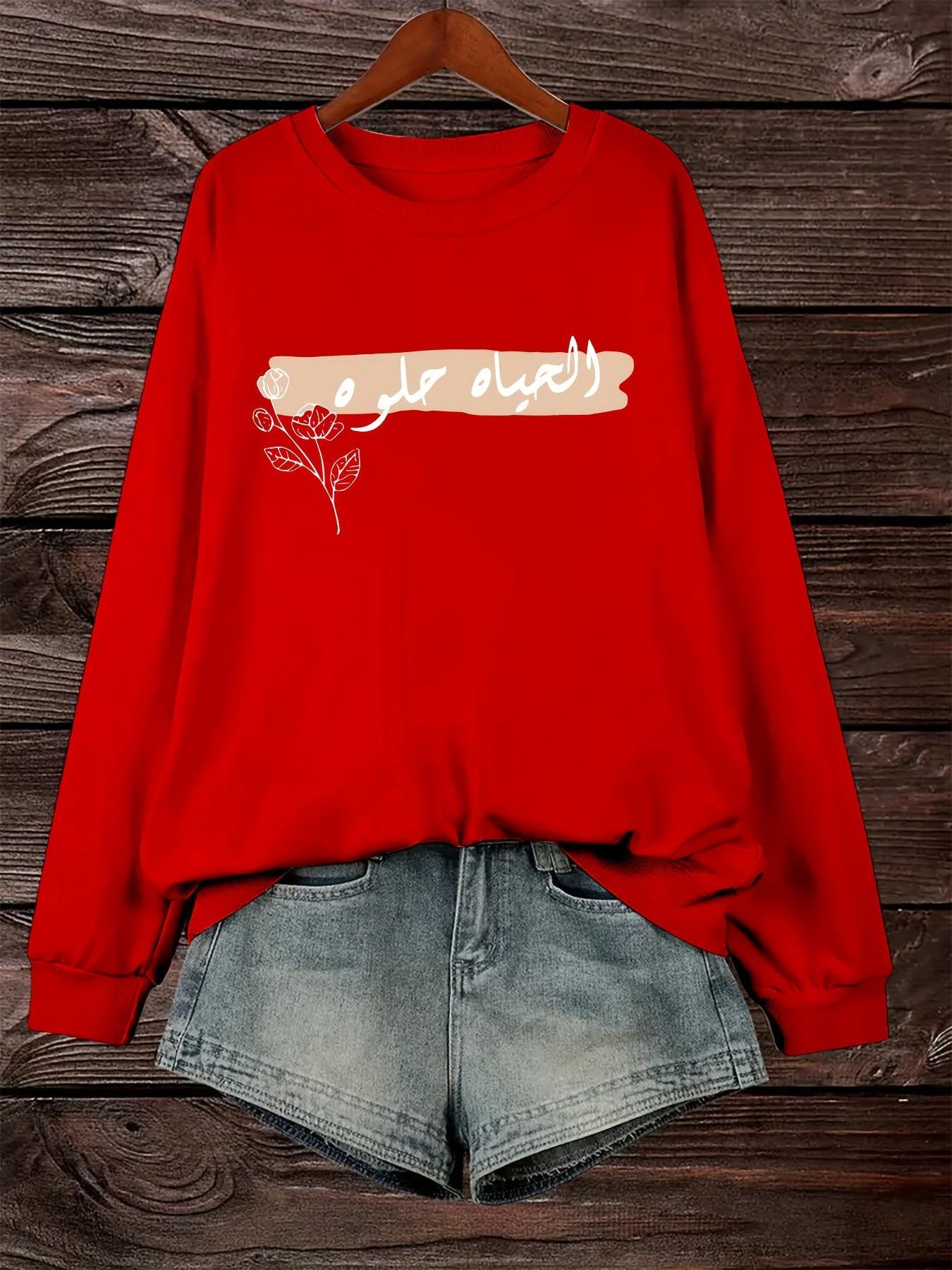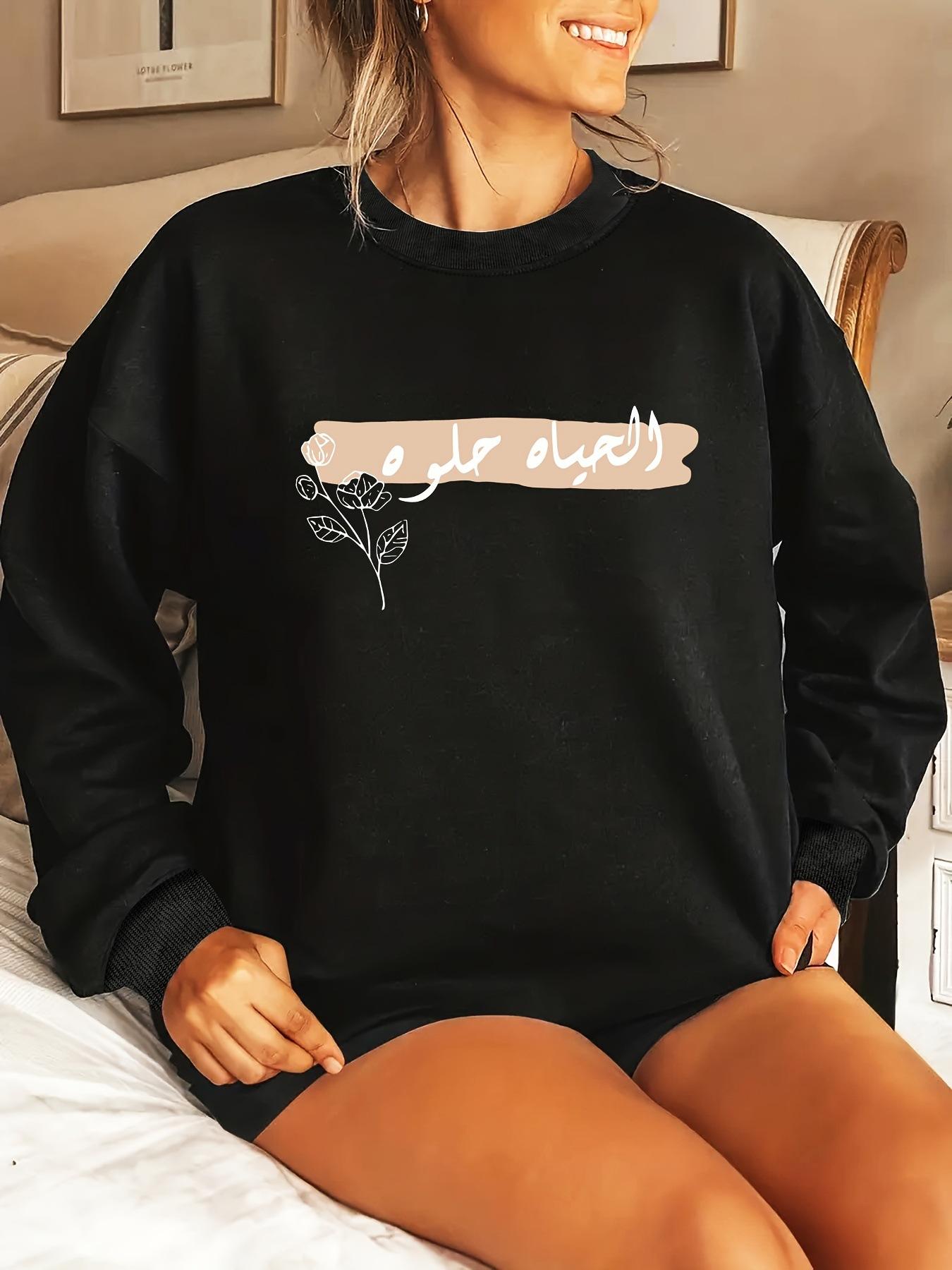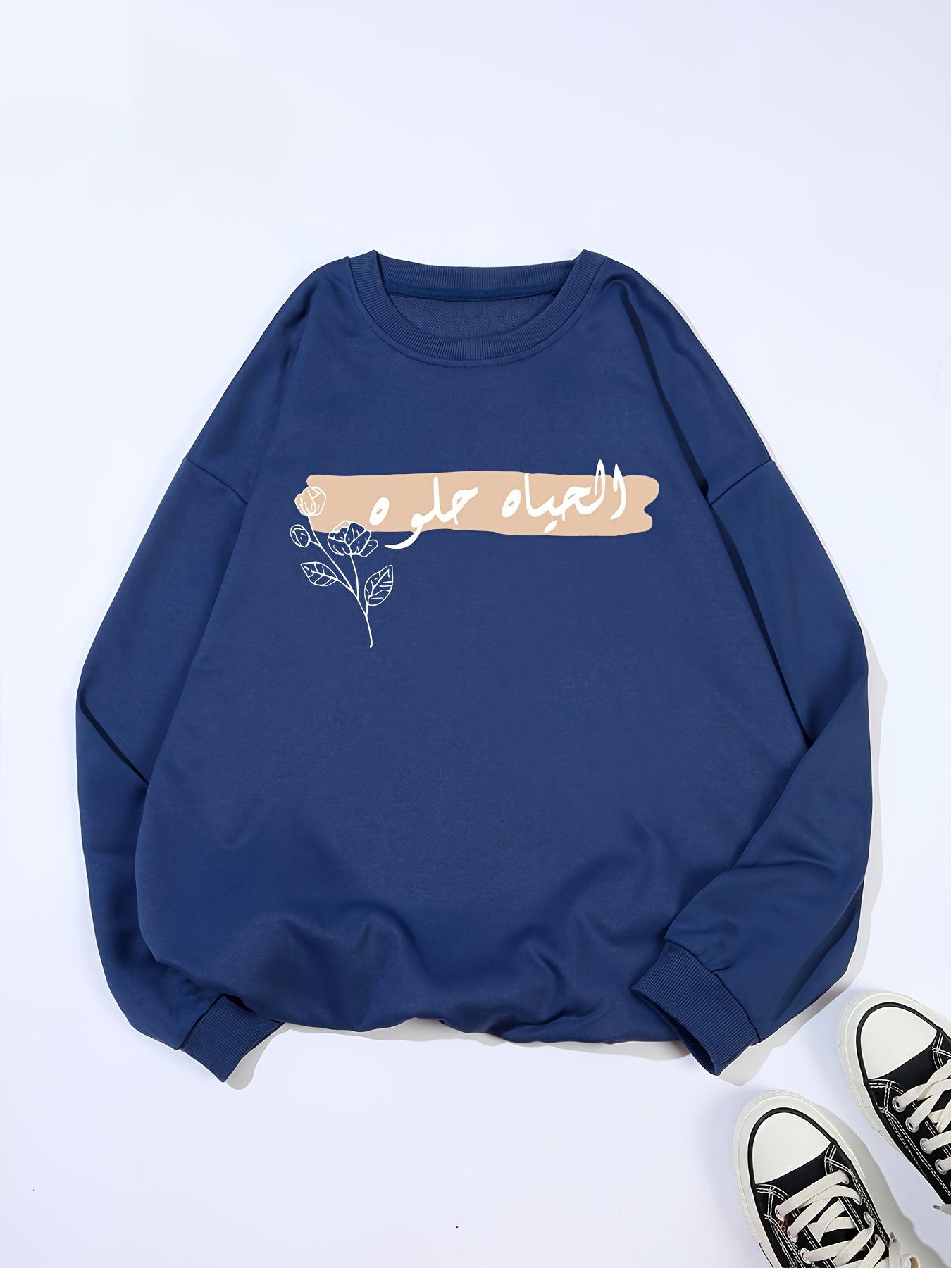 Exportación Transfronteriza Sudadera de Moda de Cuello Redondo Talla Grande con Estampado de Flores y Letras Oglr más Vendida en Europa y América