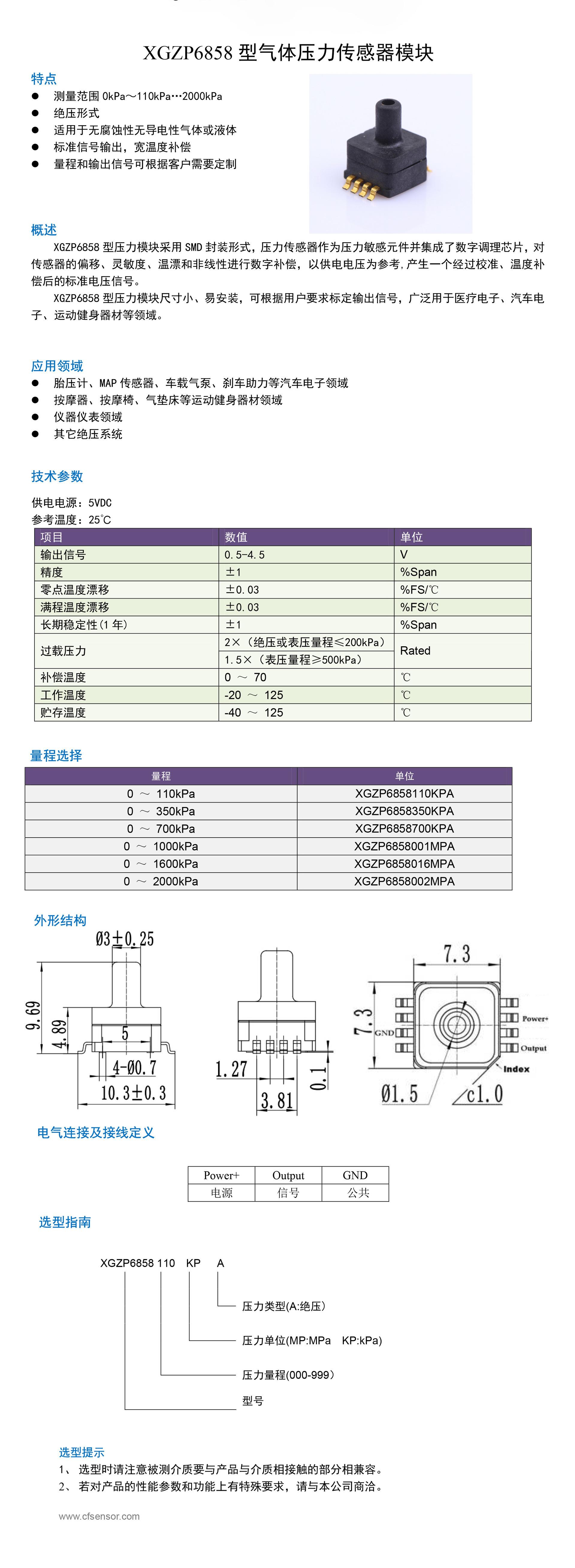 Kumquat source XGZP6858 type gas pressure sensor module absolute pressure 20-400kPa natural gas