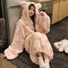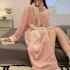 Camisón de invierno de lana coral para mujer, camisón de otoño e invierno con forro polar hasta el tobillo, bata de baño de franela gruesa, pijama largo de invierno