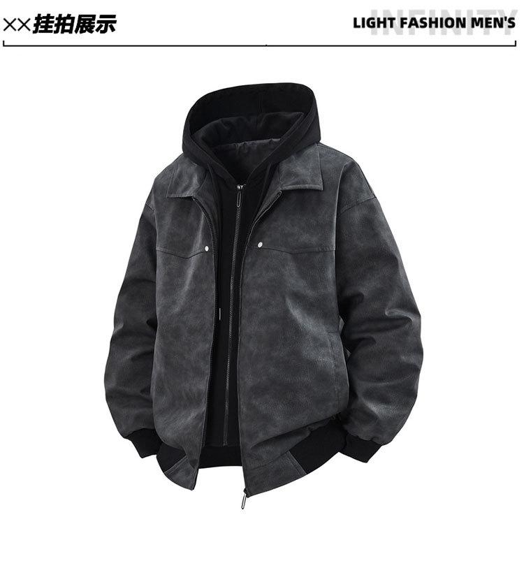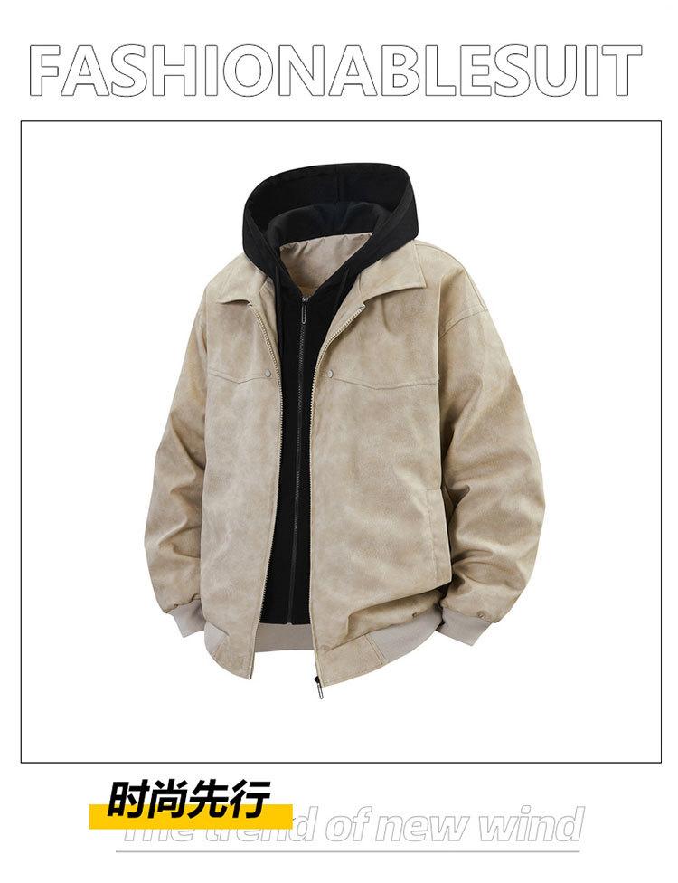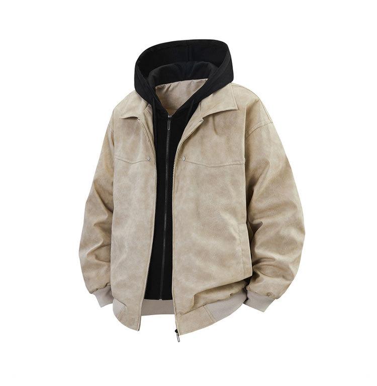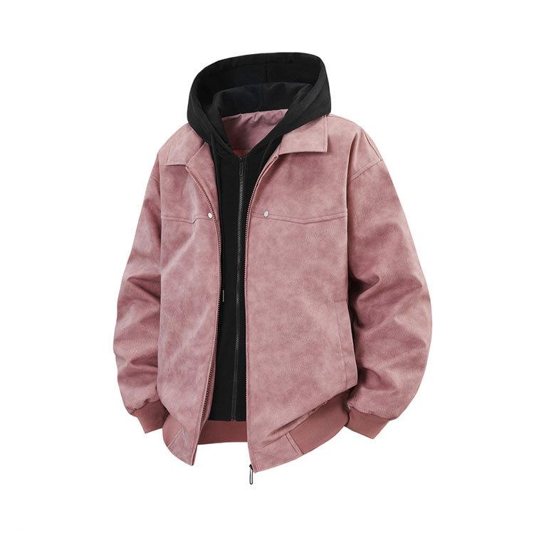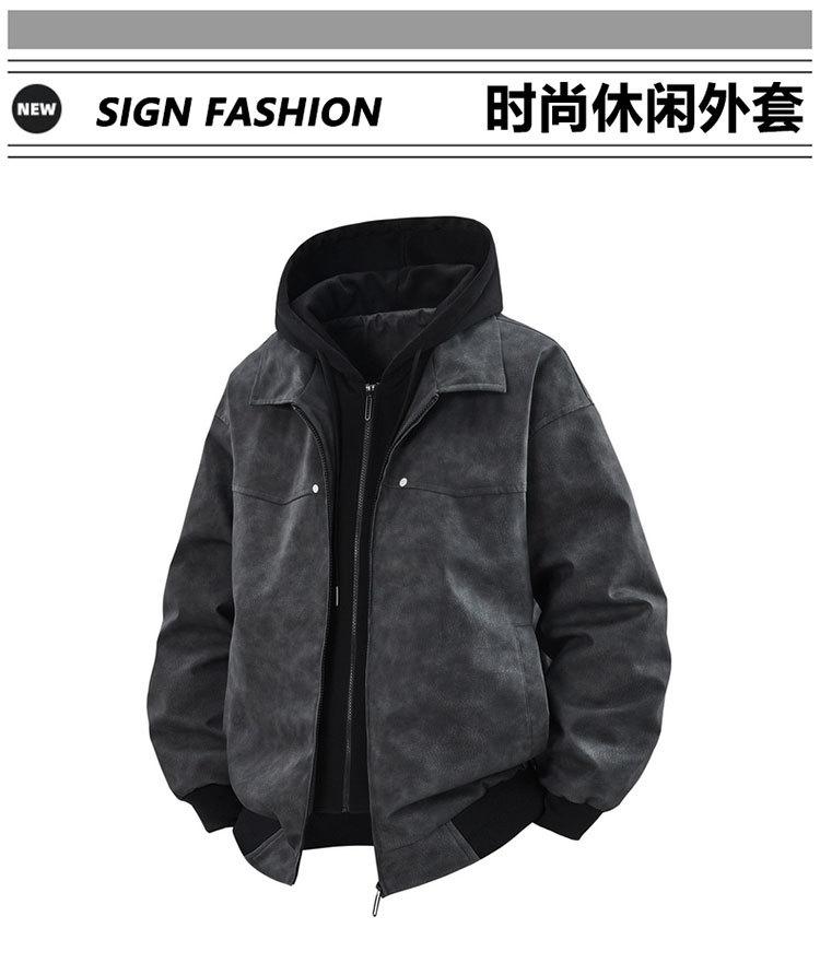 Chaqueta de PU nueva 2025, dos piezas populares para jóvenes, sencilla, combinable, holgada, informal, para primavera y otoño, top 53