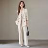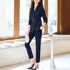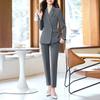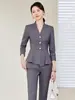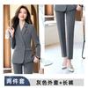 24 Primavera y otoño nuevo gris de manga larga profesional pequeño traje de cuello chaqueta de mujer pantalones falda traje de dos piezas moda