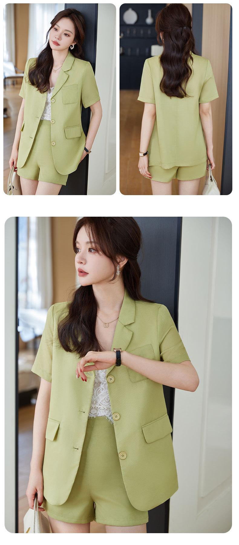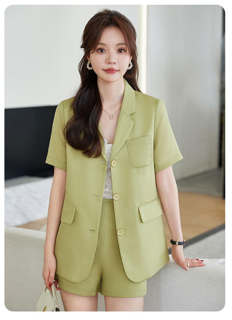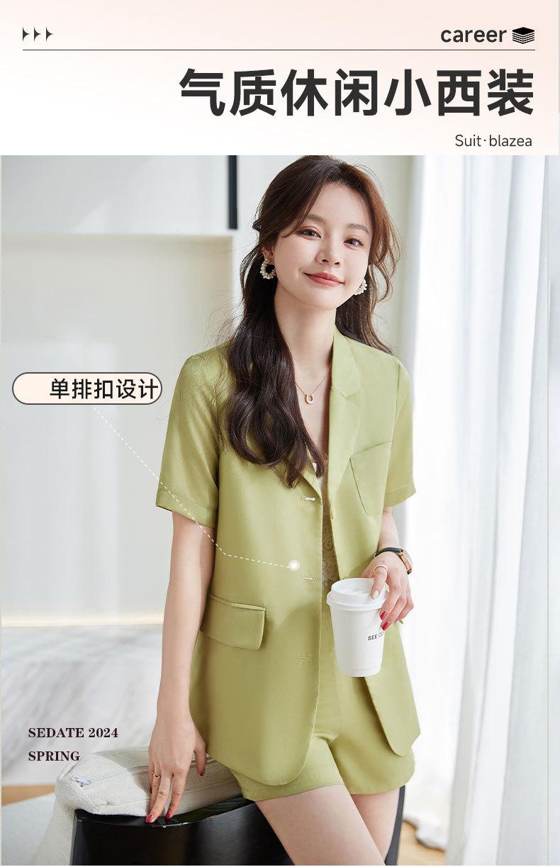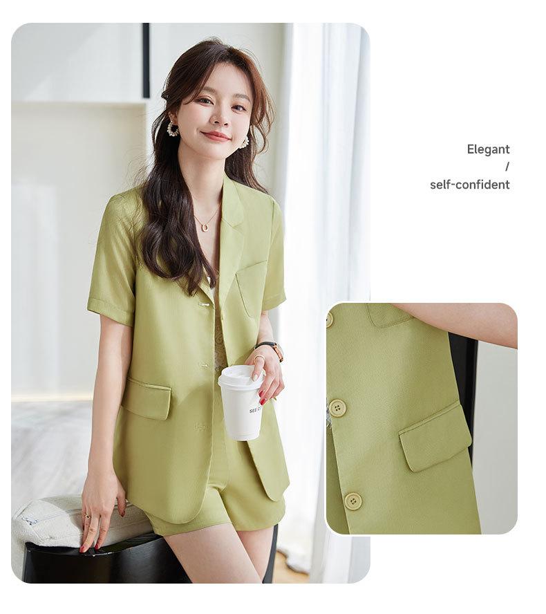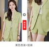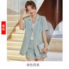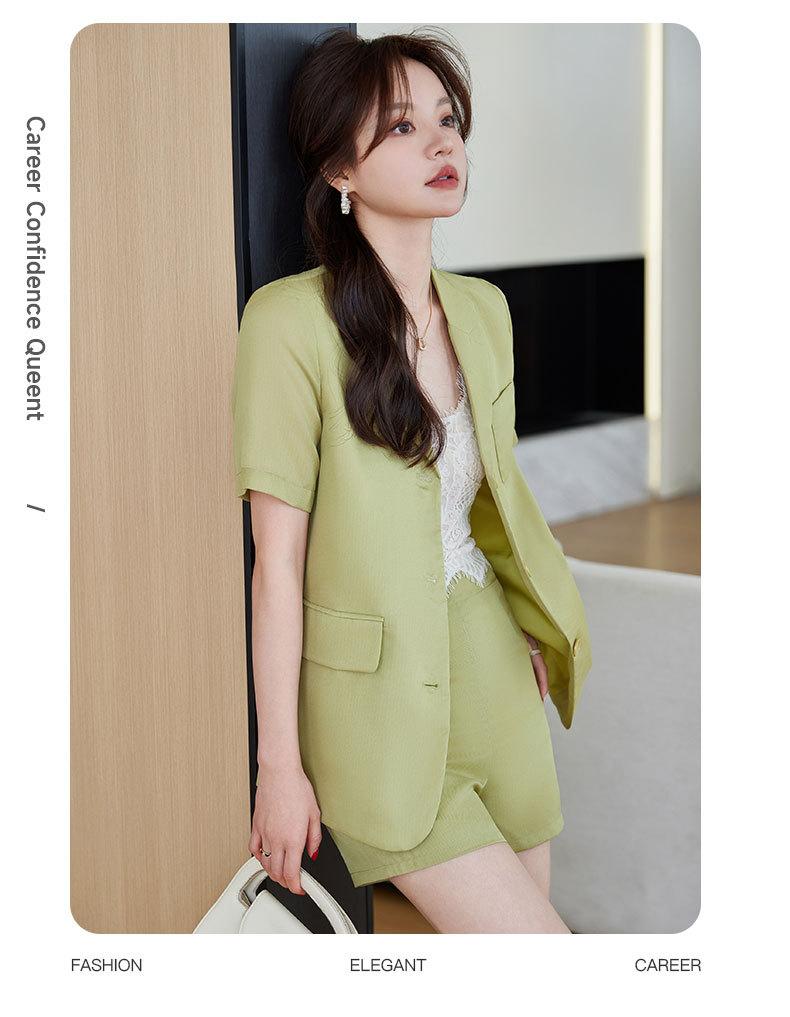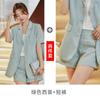 2024 Verano nuevo verde de manga corta profesional casual pequeño traje de cuello chaqueta de mujer pantalones cortos traje de dos piezas moda moda
