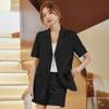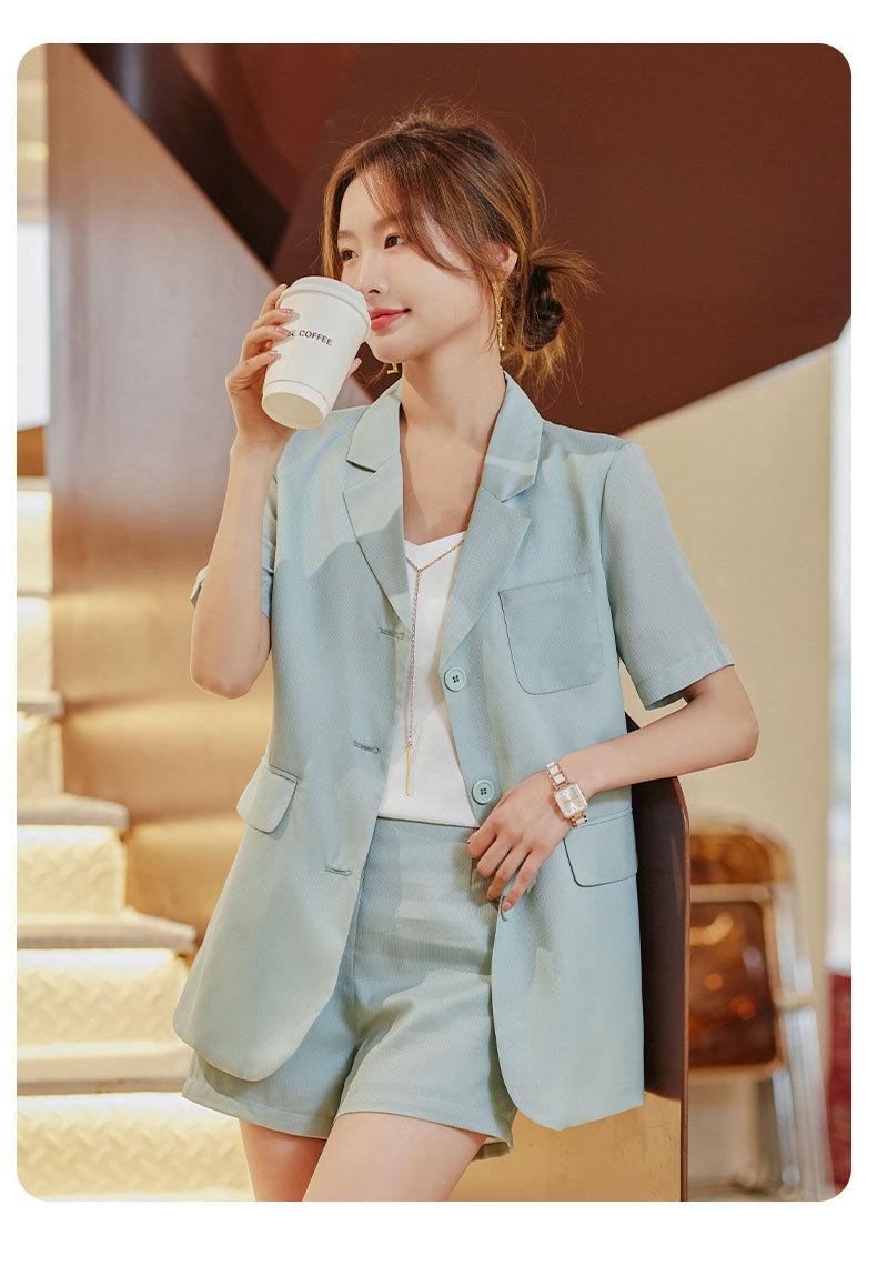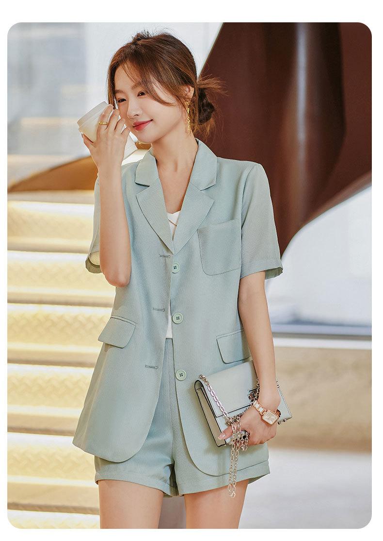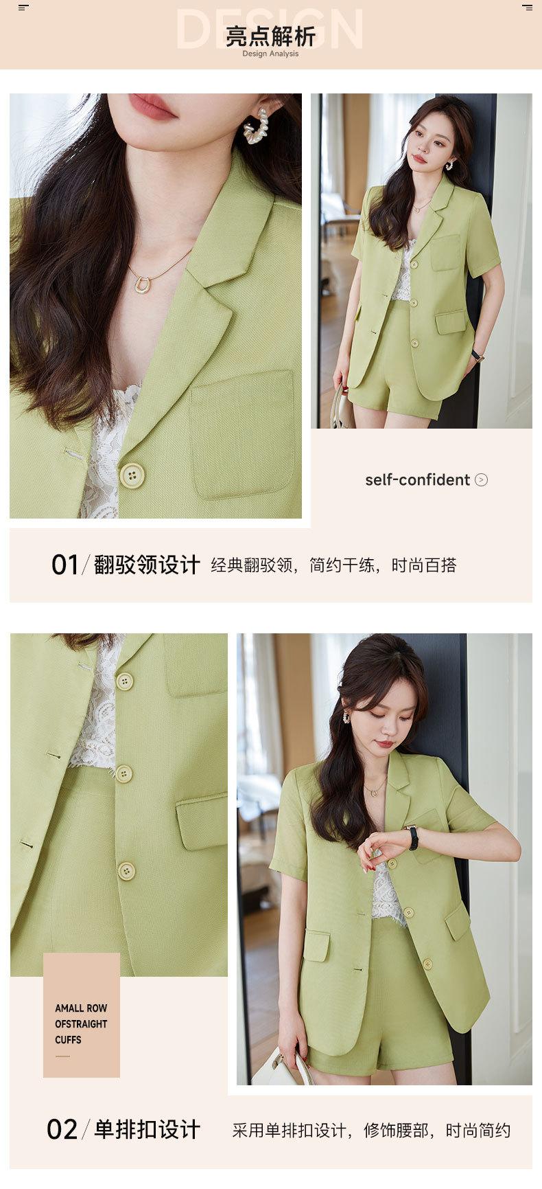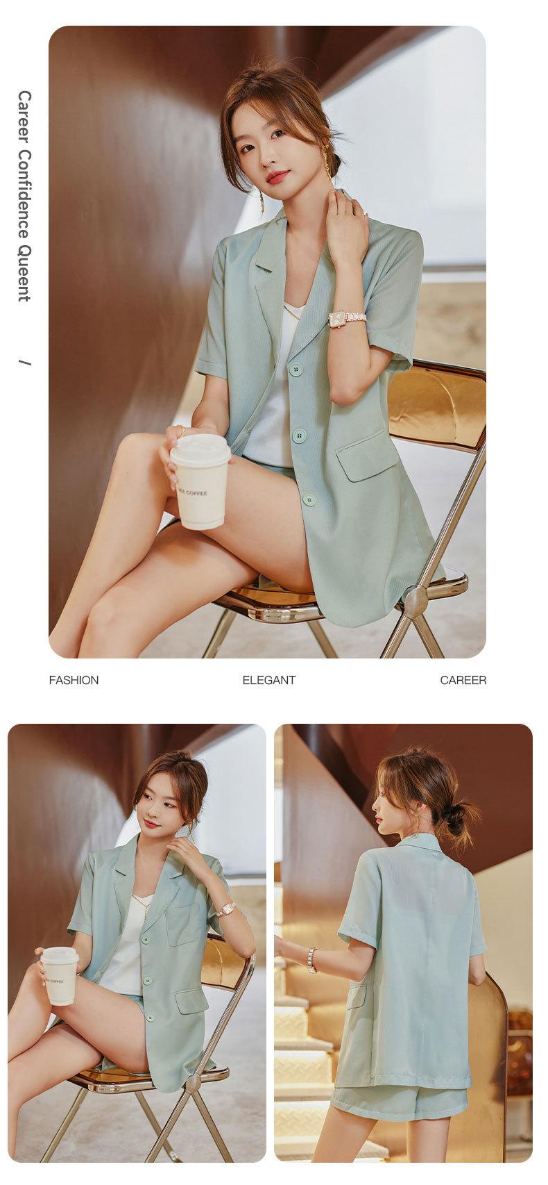 2024 Verano nuevo verde de manga corta profesional casual pequeño traje de cuello chaqueta de mujer pantalones cortos traje de dos piezas moda moda