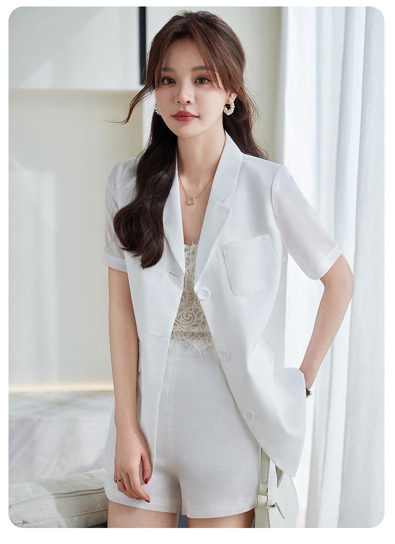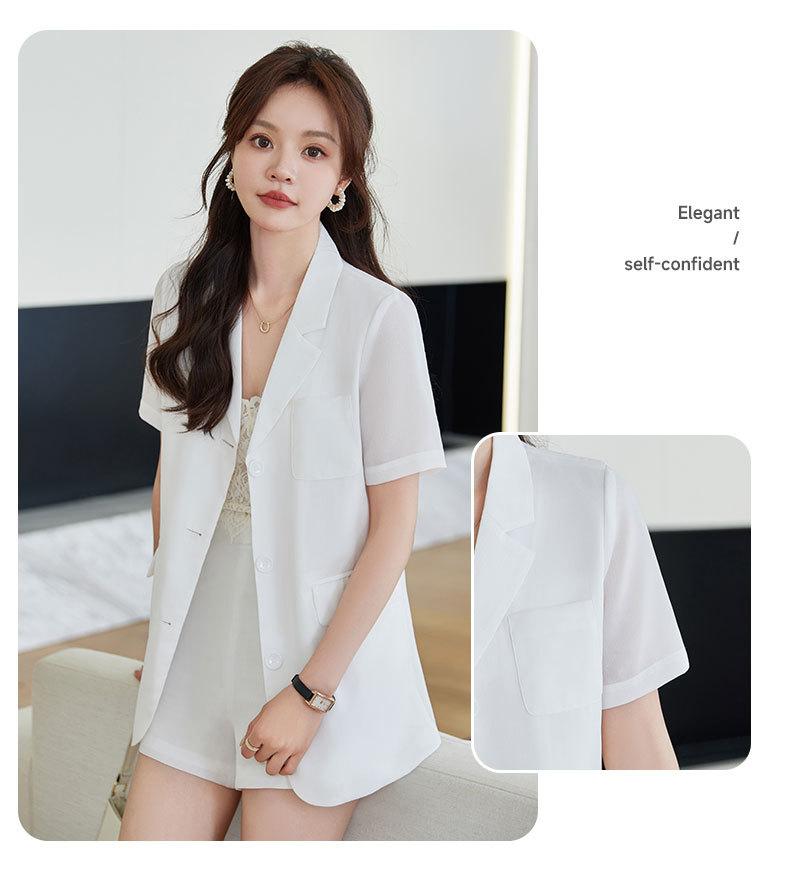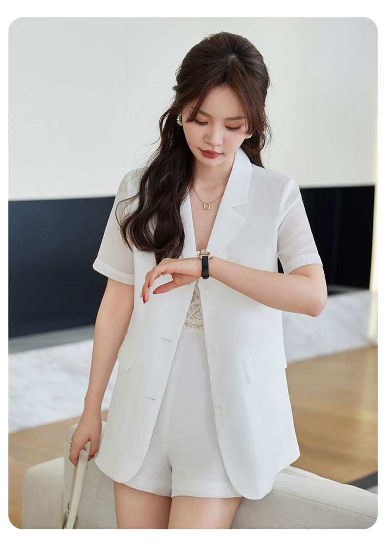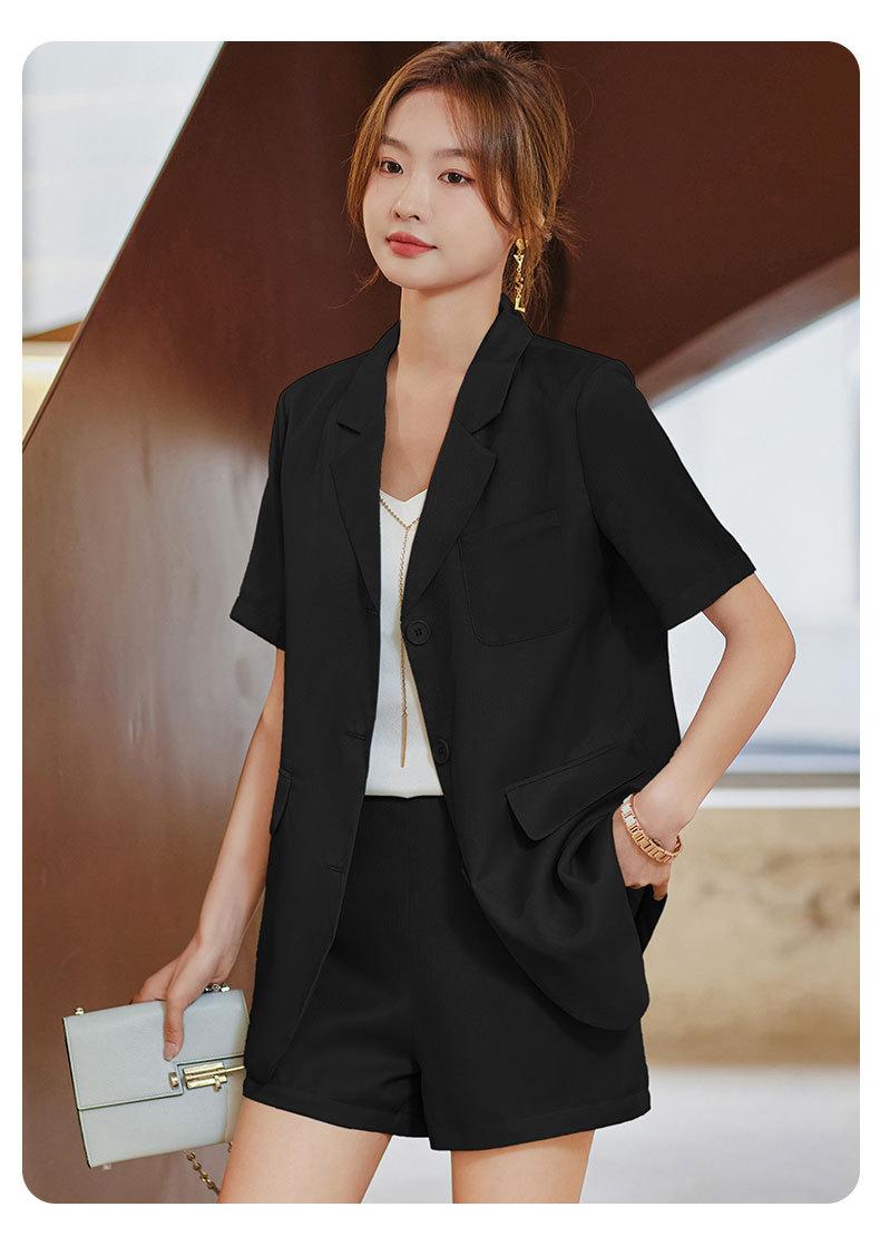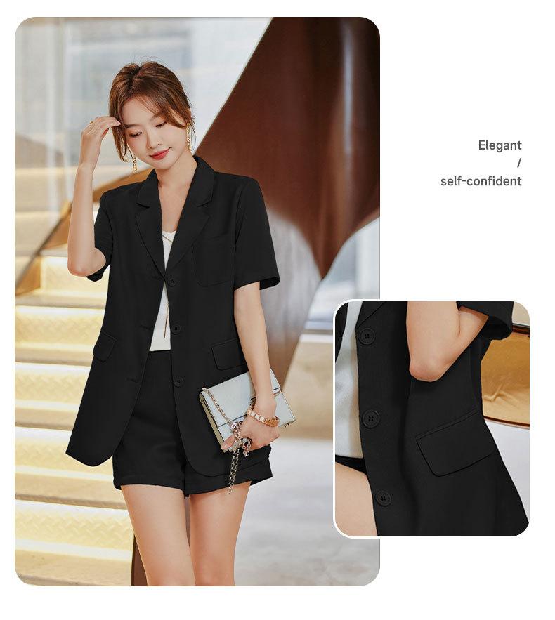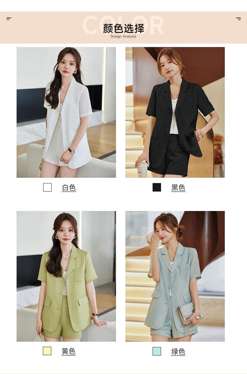 2024 Verano nuevo verde de manga corta profesional casual pequeño traje de cuello chaqueta de mujer pantalones cortos traje de dos piezas moda moda