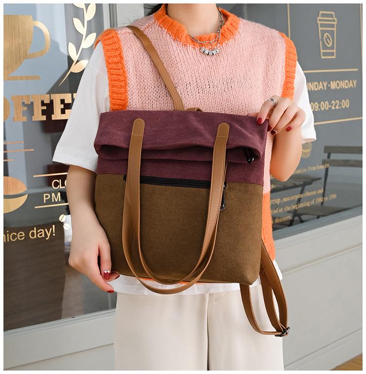 Bolsa de Lona Lavada al Por Mayor del Fabricante para Mujer, Bolso Casual de Hombro Cruzado, Mochila Multifuncional de Moda Estilo Coreano, Versátil