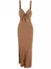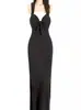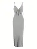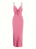 Vestido de mujer europeo y americano con cuello en V, tirantes, tirantes huecos, abertura, ajustado, sin espalda, vestido sexy de verano