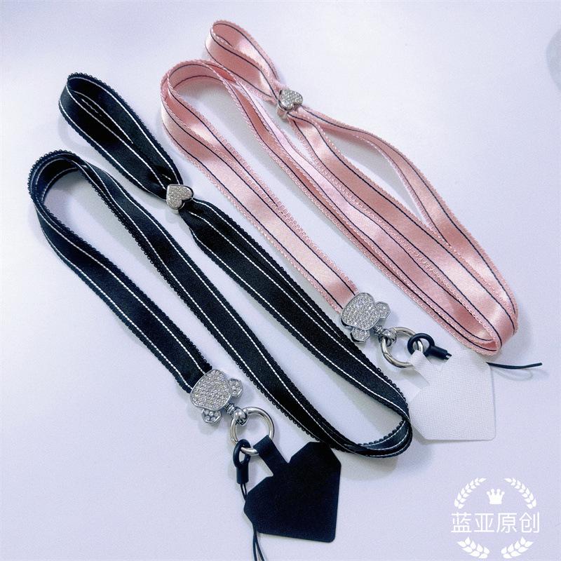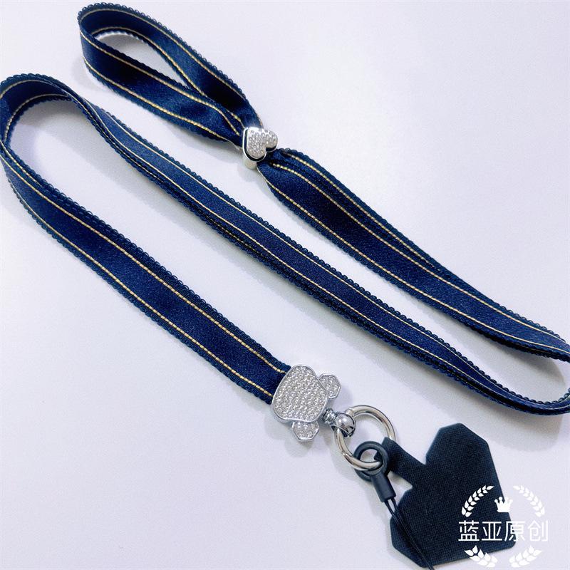 Diseño exclusivoCorrea de seda sedosa ajustable para bandolera con hebilla de diamante cordón anticaídas para teléfono móvil clip de correa universal refrescante