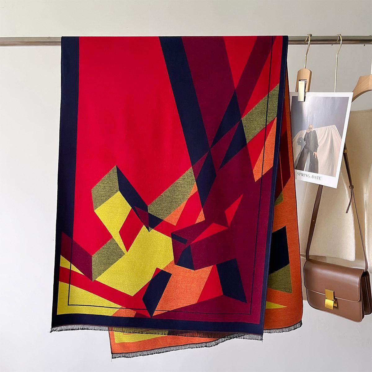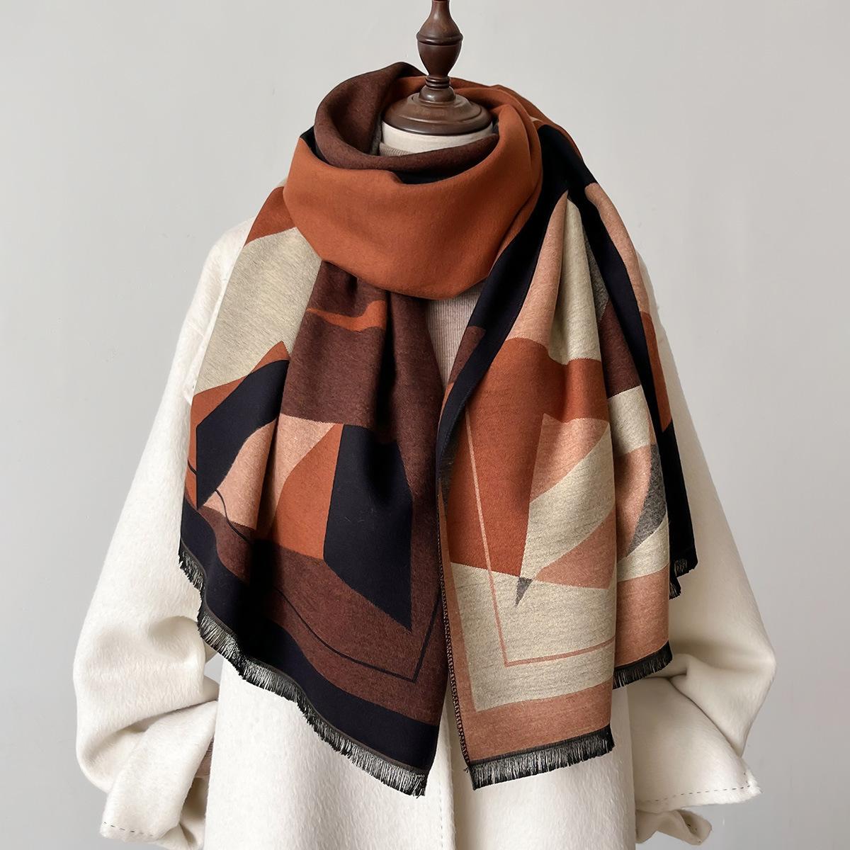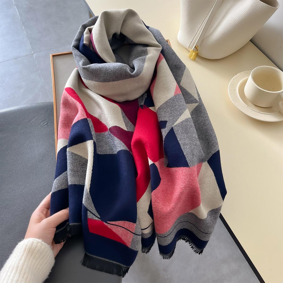 Otoño e Invierno Nuevo Bufanda Geométrica de Cachemira para Mujer Estilo Coreano Cálido Aire Acondicionado Moda Chal Multifuncional Bufanda al por Mayor