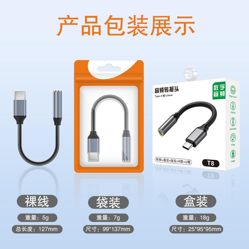 Adaptador T8: modelo de audio digital, compatible con transmisión en vivo de tarjeta de sonido y escudo U bancario, decodificación DAC con buena calidad de sonido. Compatible con Samsung, IPAD y teléfonos móviles convencionales nacionales. [No compatible con teléfonos móviles con orificios redondos]