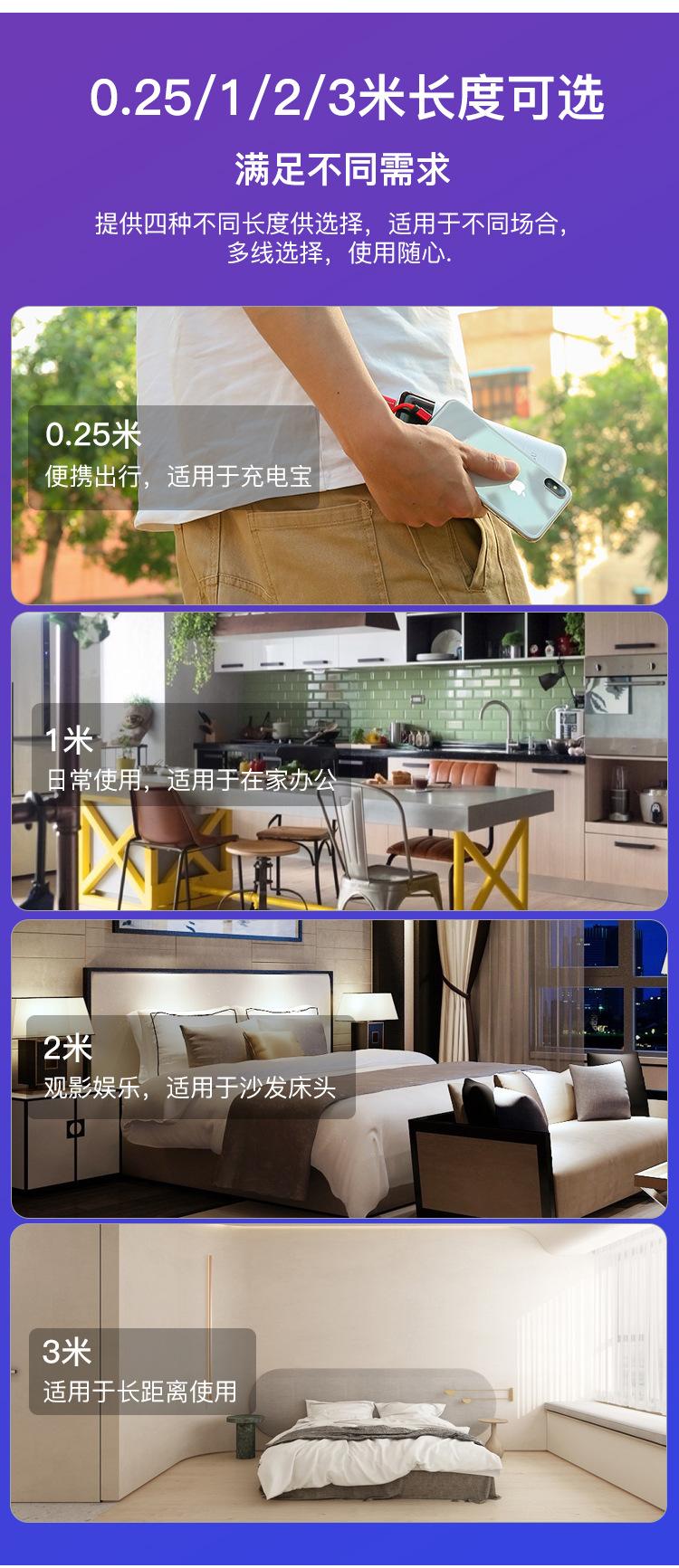 5. Longitud del cable: 0.25 metros, 1 metro, 2 metros, 3 metros (una variedad de opciones de longitud, cargando y jugando en cualquier momento y en cualquier lugar)