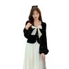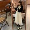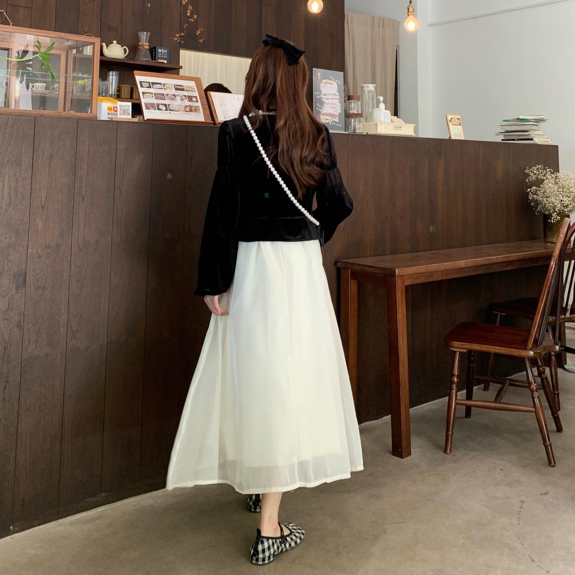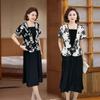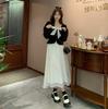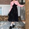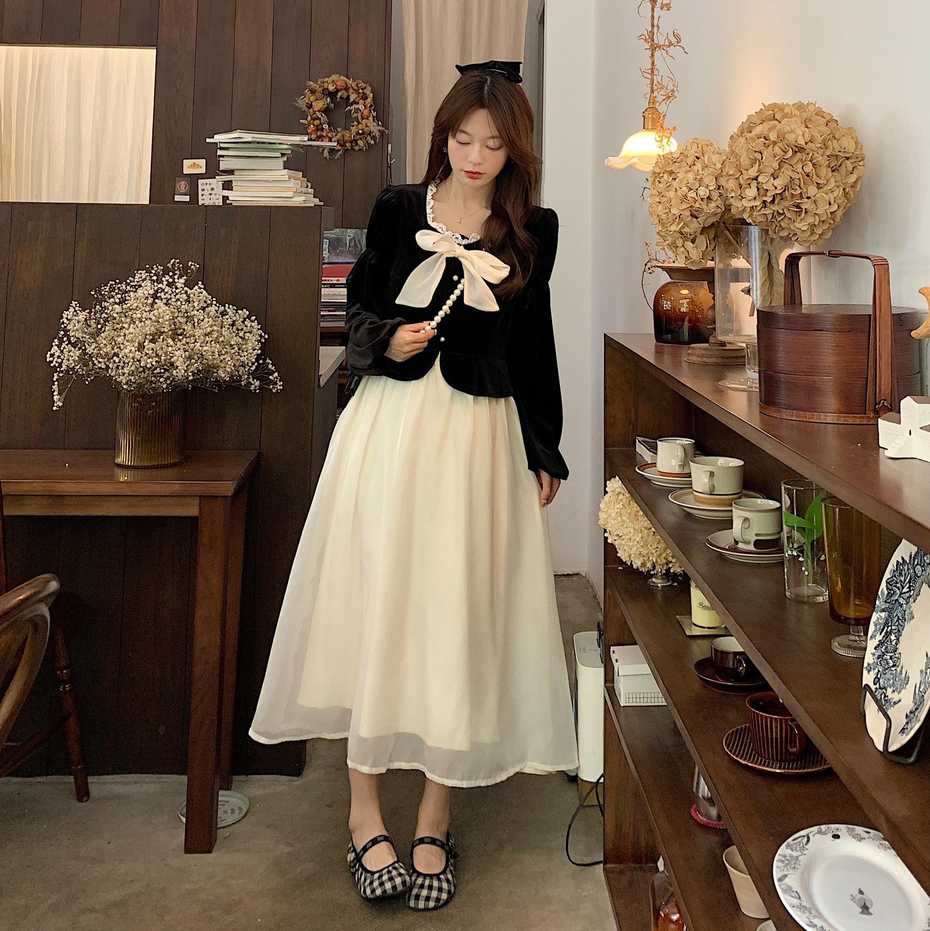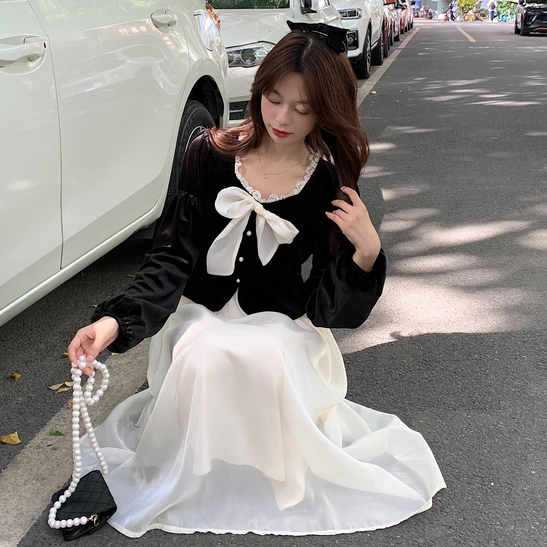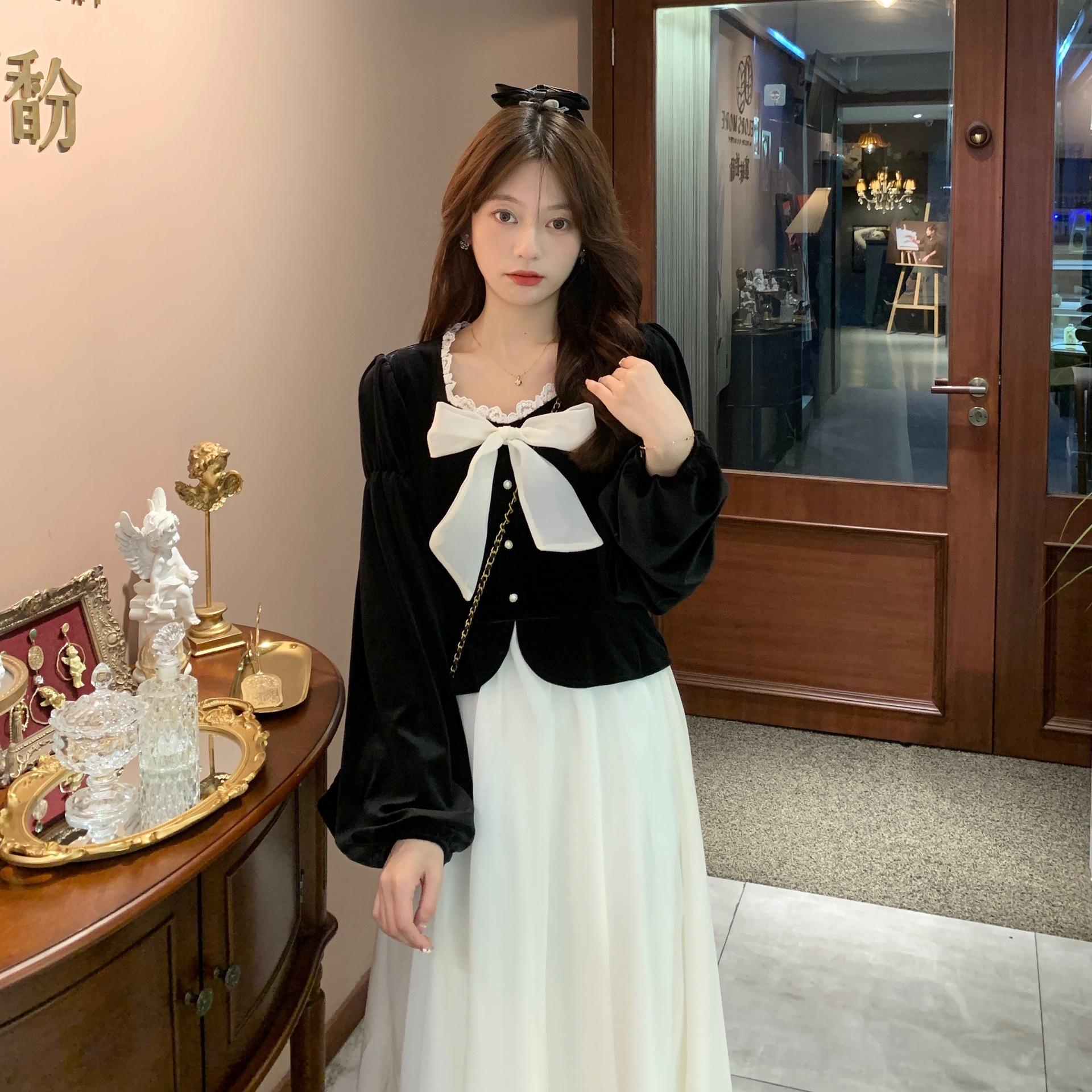 Ropa para Mujer de Talla Grande 2025 Principios de Primavera Nuevo Gordo mm Vestido de Terciopelo de Dos Piezas Falso para Mujer Top con Lazo Falda Empalmada