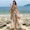 Vestido sin mangas con tirantes para mujer, verano 2025, nuevo estilo nacional, corte entallado, narcisos, falda larga suave