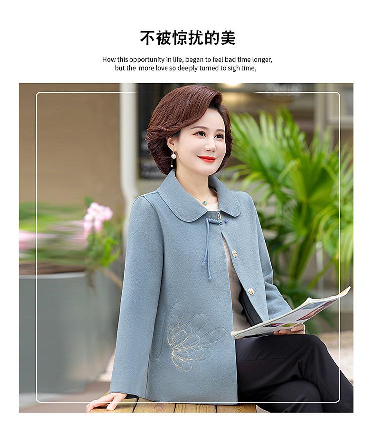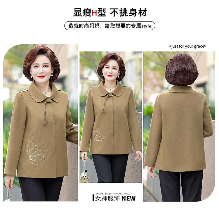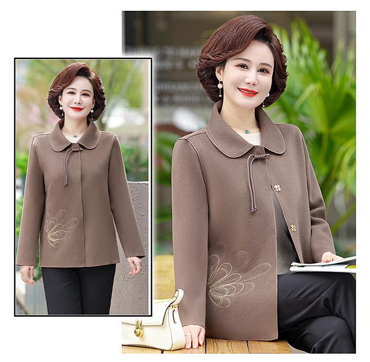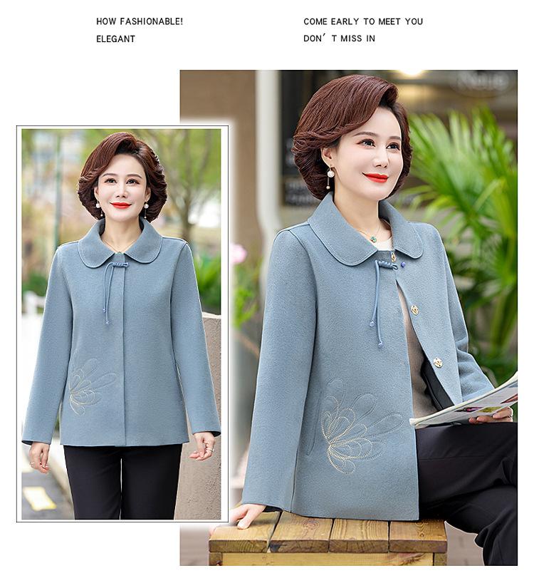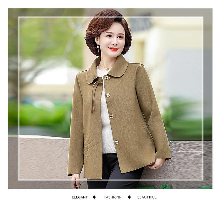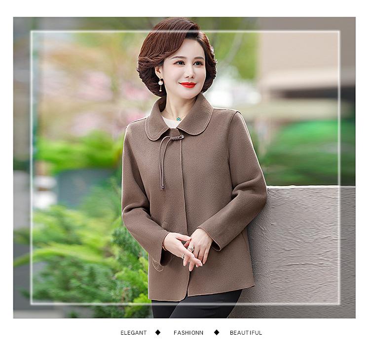 Abrigo tweed de doble vista para madre de mediana edad 2024, primavera, estilo occidental para mujeres de mediana edad y mayores, top tweed noble de primavera y otoño