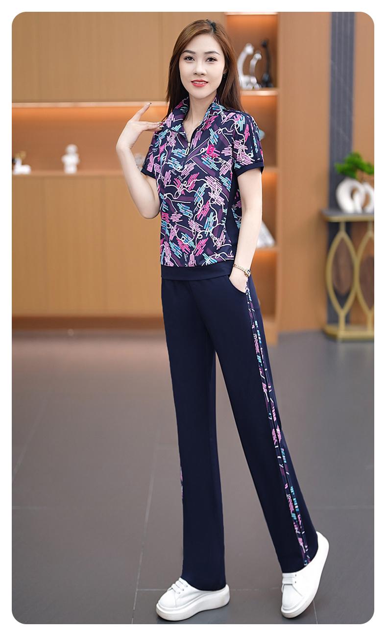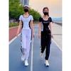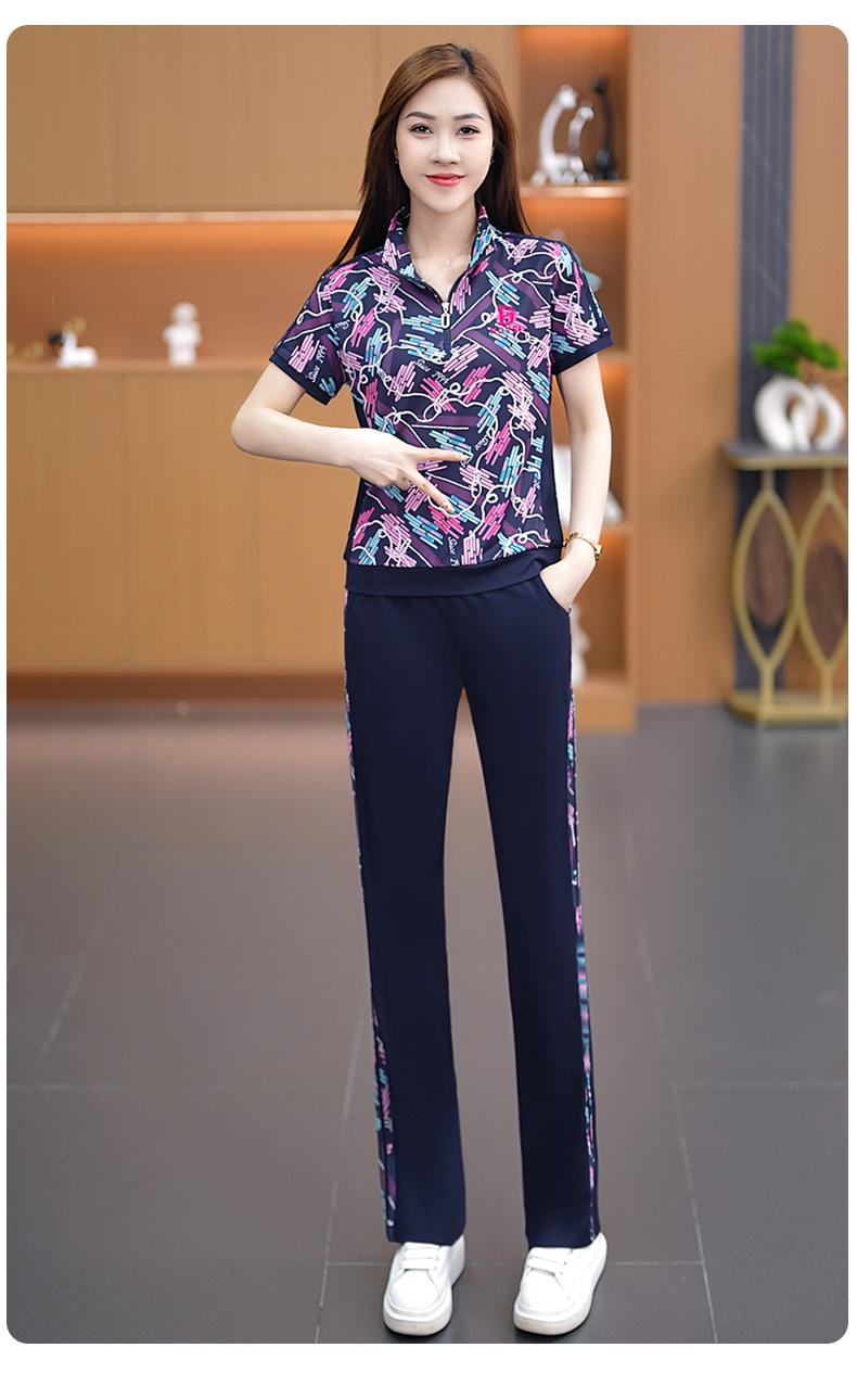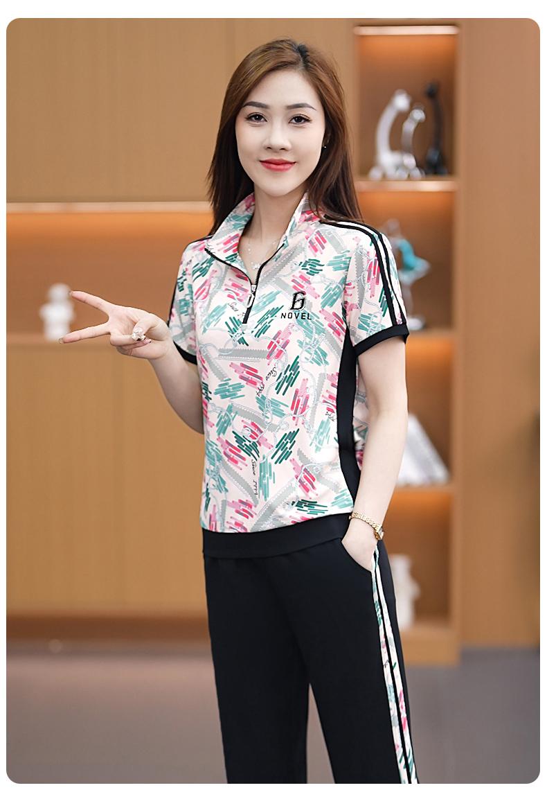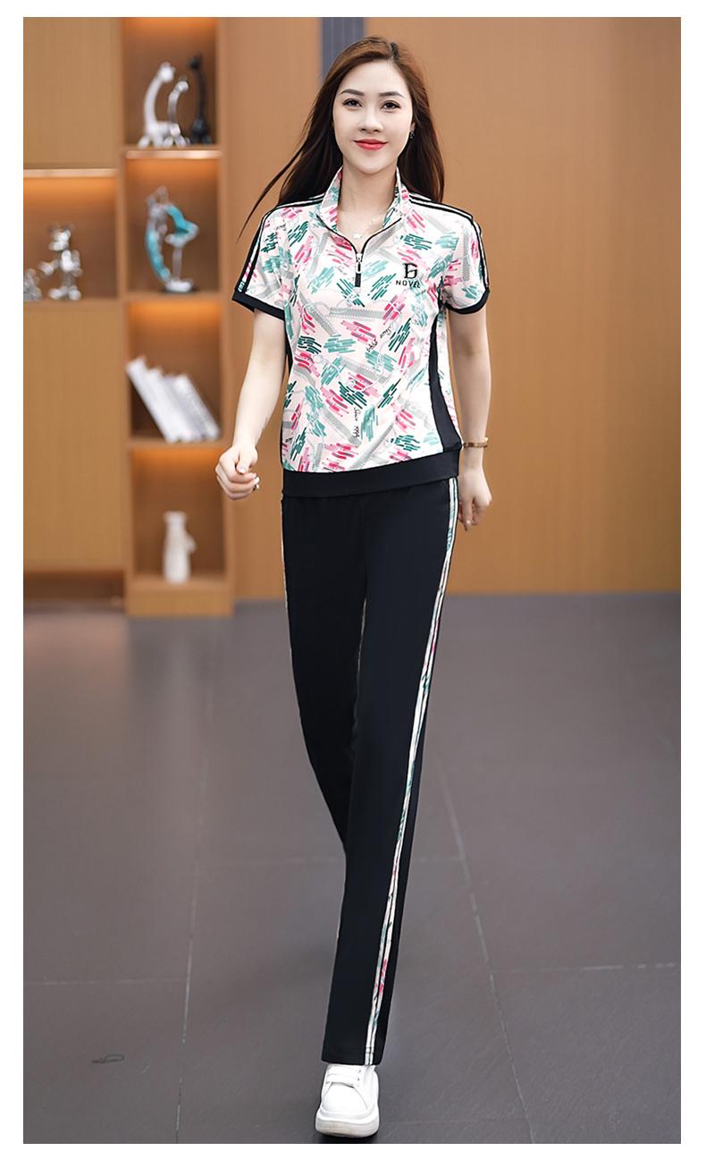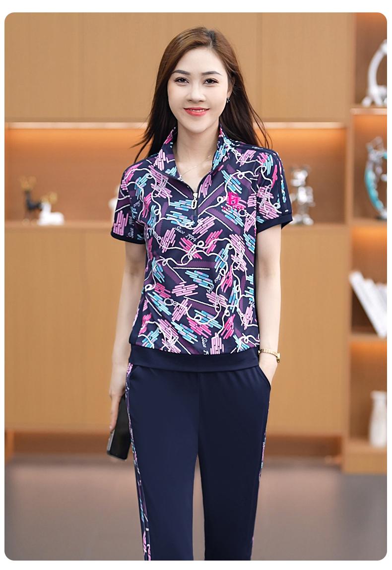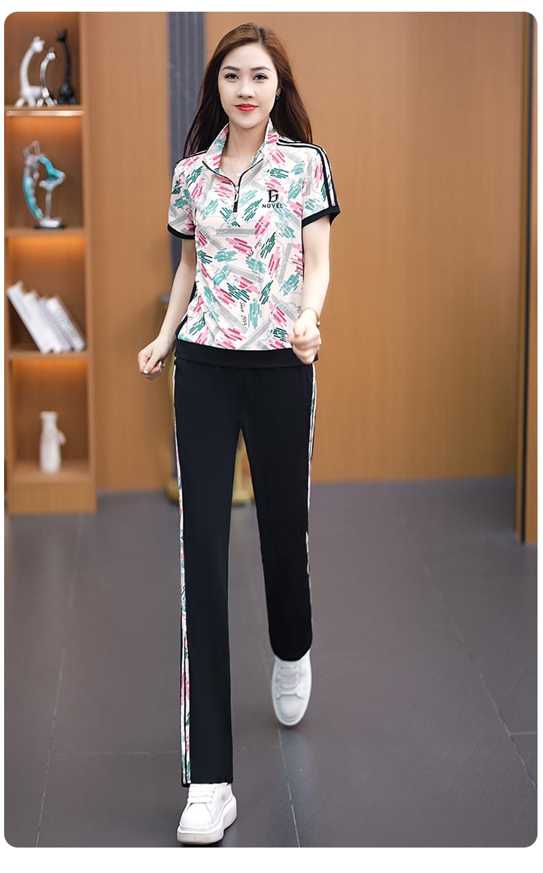Traje deportivo casual para mujer Verano 2024 Nueva moda Europea y americana Camiseta polo Algodón fino Manga corta Ropa para correr Conjunto de dos piezas