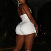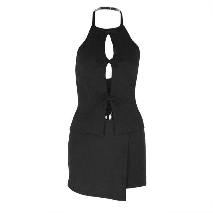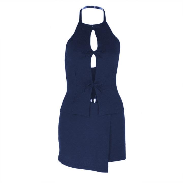 Conjunto de dos piezas de falda pantalón halter elegante para mujer europea y americana para primavera y verano 2025, color puro, con cortes, para fiesta