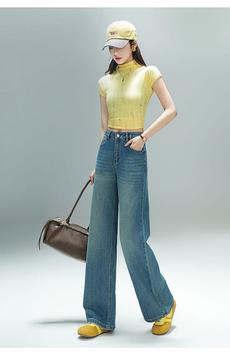 Jeans de Cintura Alta para Mujer Verano 2025 Nueva Moda Pierna Recta Sueltos Caída Petite Tencel Pantalones de Pierna Ancha