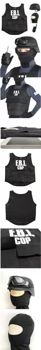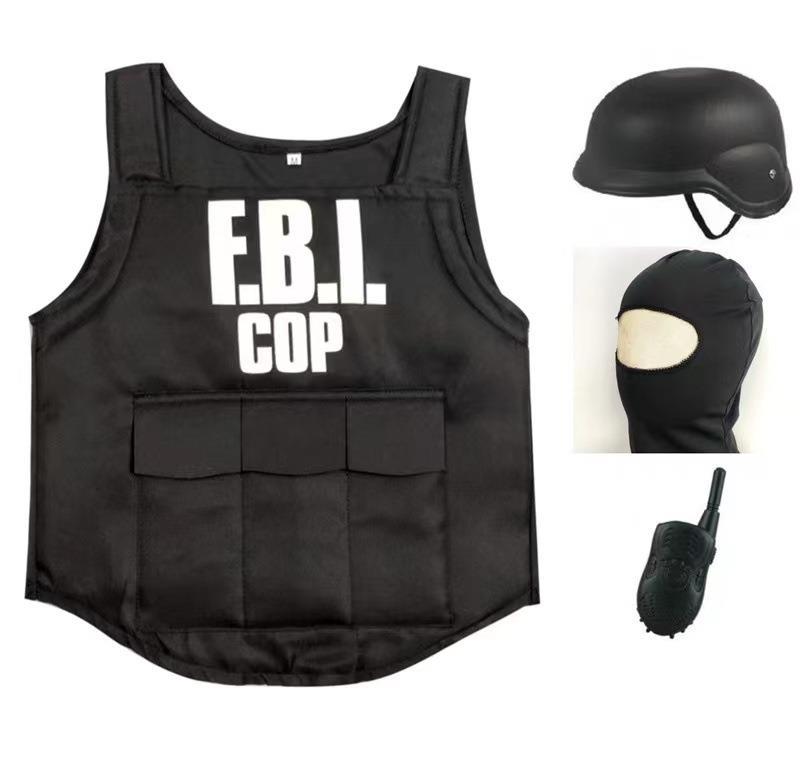 Fiesta de Halloween para niños, ropa de juego de policía del FBI, gafas de protección corporal especiales de policía de gran venta en Europa y América, conjunto de cinco piezas