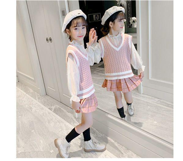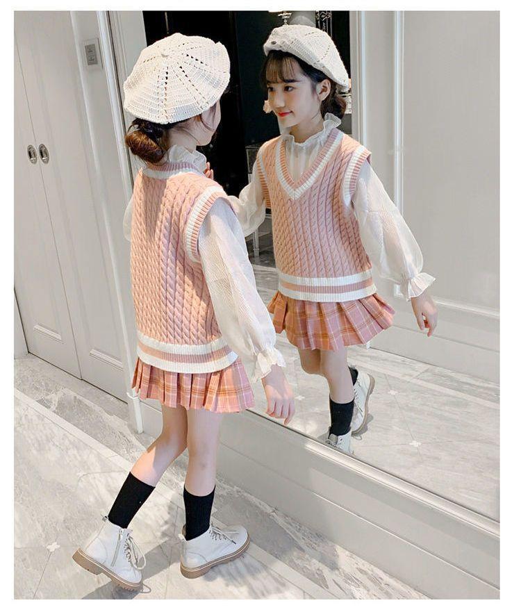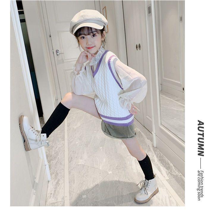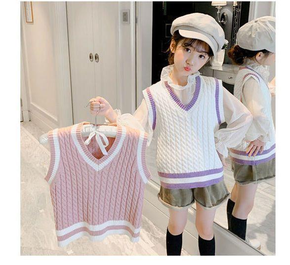Chaleco para niña, otoño e invierno, nuevo, elegante y de moda, sin mangas, para niñas grandes, estilo coreano, suéter de punto de invierno para niñas pequeñas.