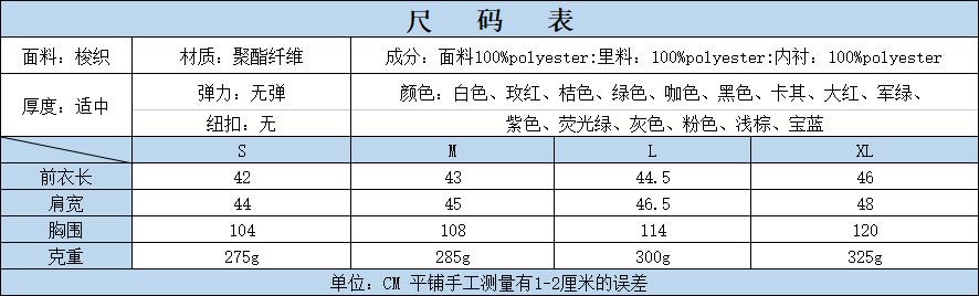 White, Khaki, Green, Black, Coffee, Orange, Rose Red, Big Red, Army Green, Grey, Purple, Fluorescent green, Bl...