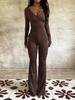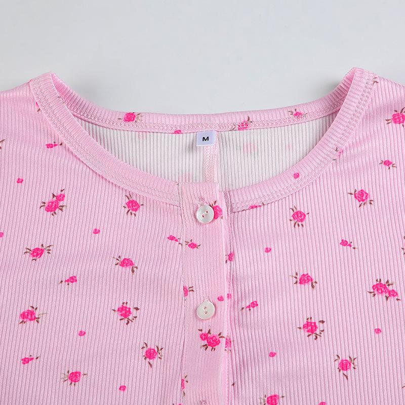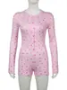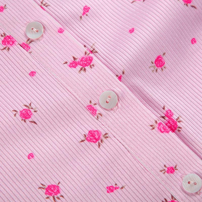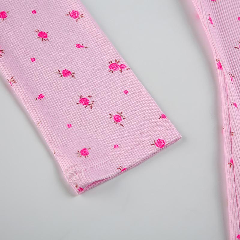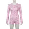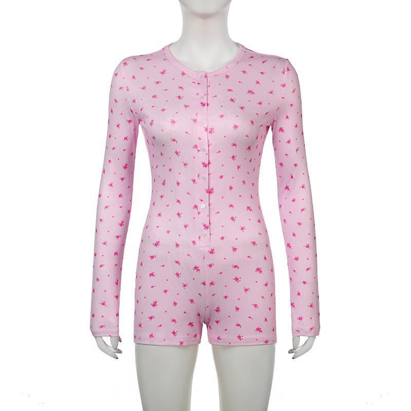 Europeo y Americano Transfronterizo Primavera y Verano Nuevo Casual Floral Cuello en V con Botones Mono de Manga Larga Sexy Slim Estilo Puro Lujuria