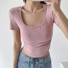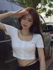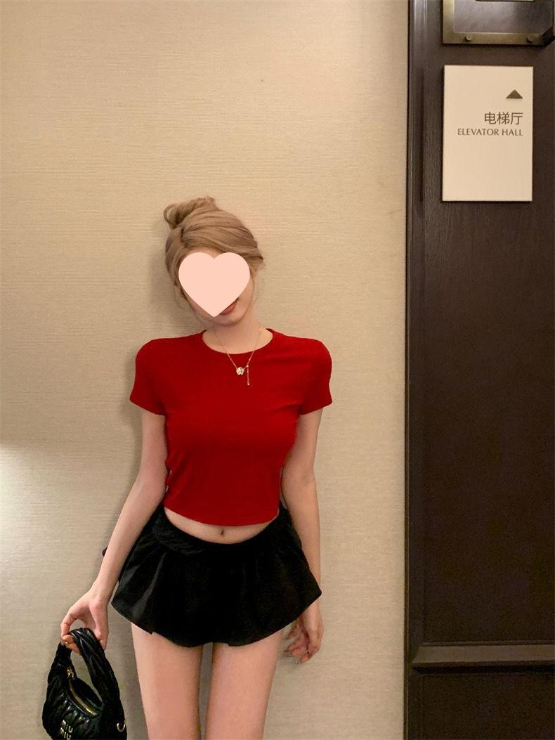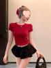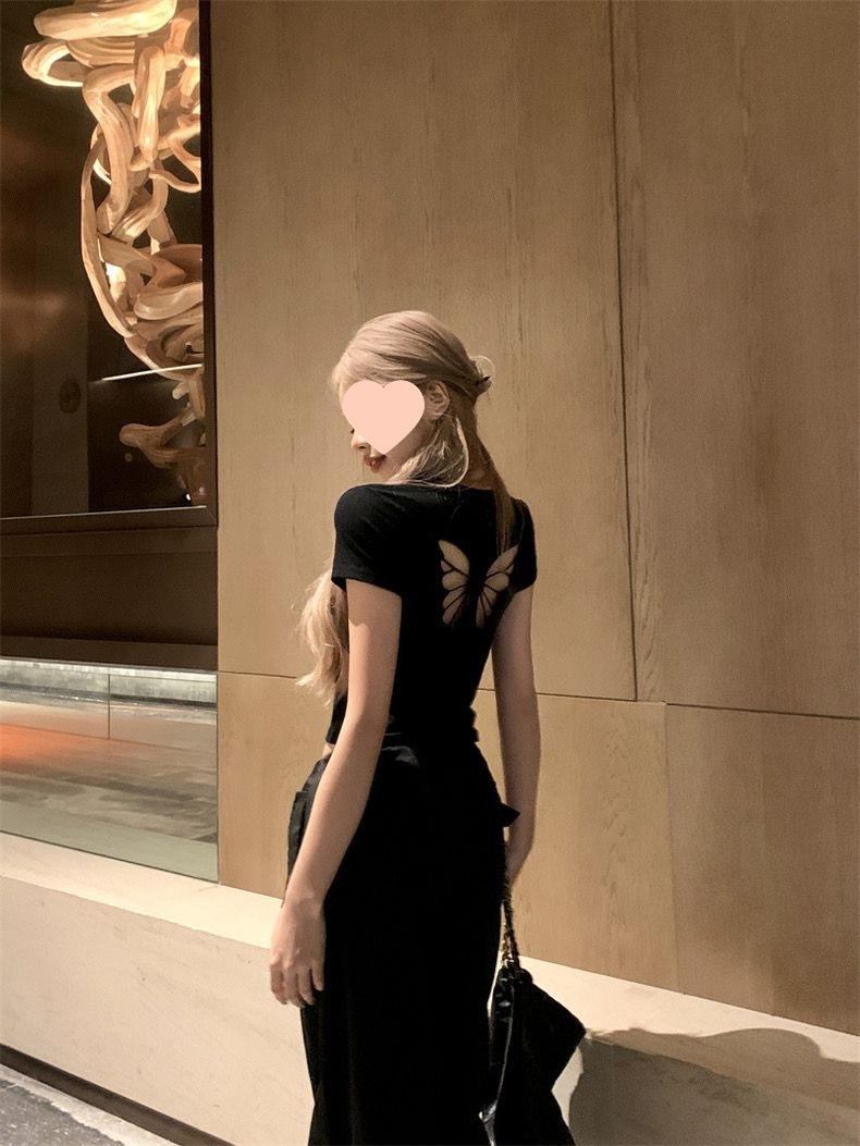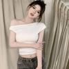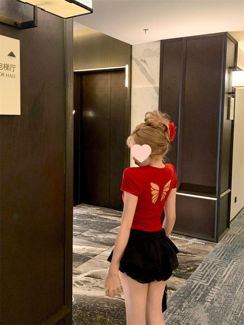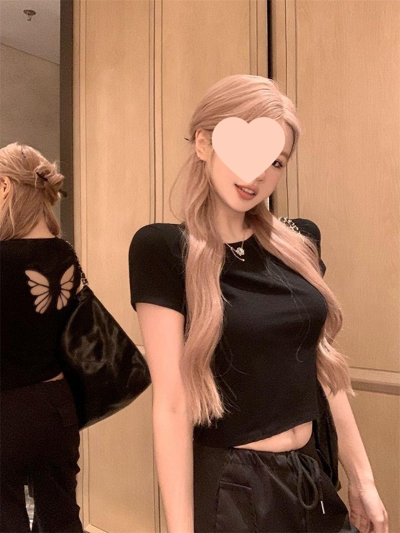 Playera de manga corta con hombros descubiertos de mariposa hueca dulce y picante para mujer, verano, sexy, nicho, entallada, adelgazante, corta hasta el ombligo