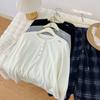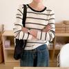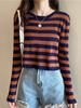 Suéter de manga larga con cuello redondo y rayas de estilo coreano con borde cruzado, conjunto de colores contrastantes de otoño e invierno 2023, camisa corta ajustada hasta la parte inferior