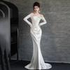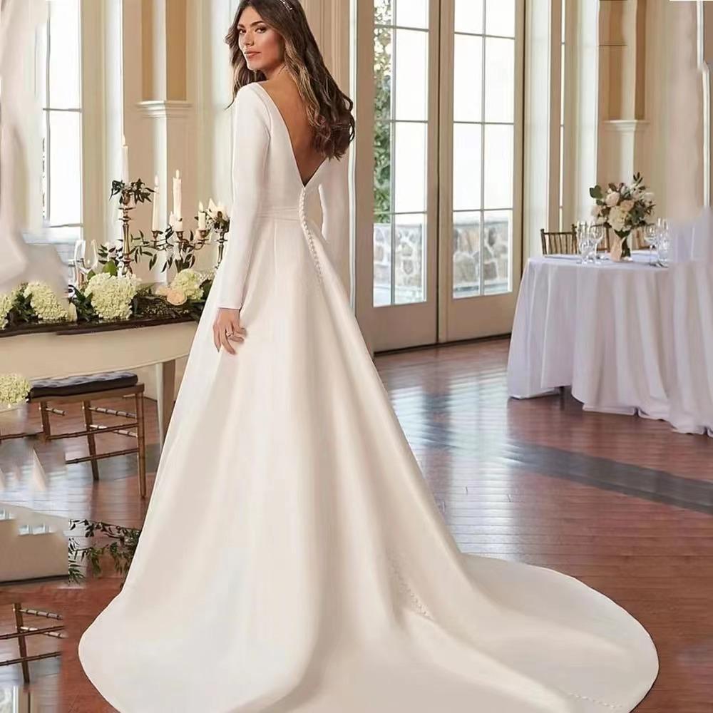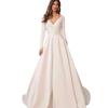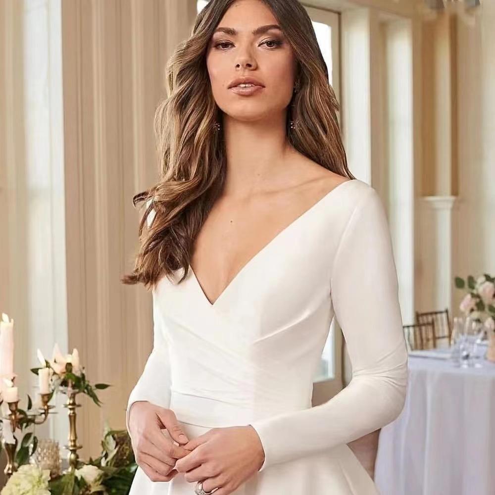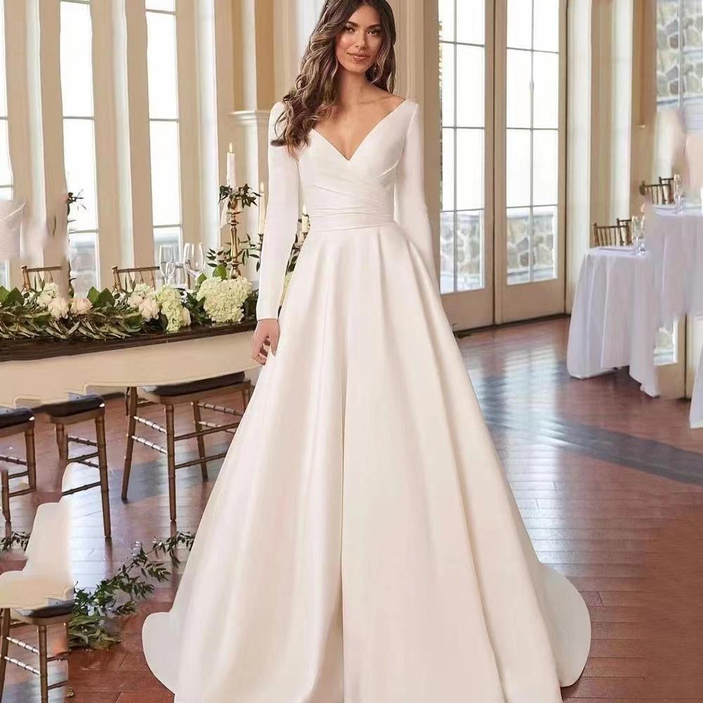Vestido de Novia Ligero de Satén de Manga Larga 2025 Nuevo Vestido Nupcial Francés con Clase Textura con Clase Cola Principal Vestido Blanco