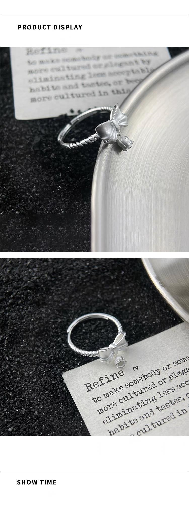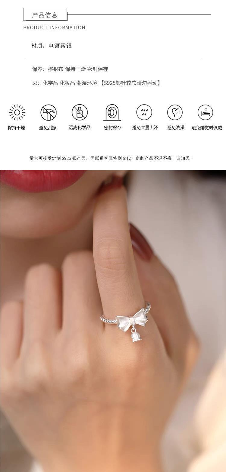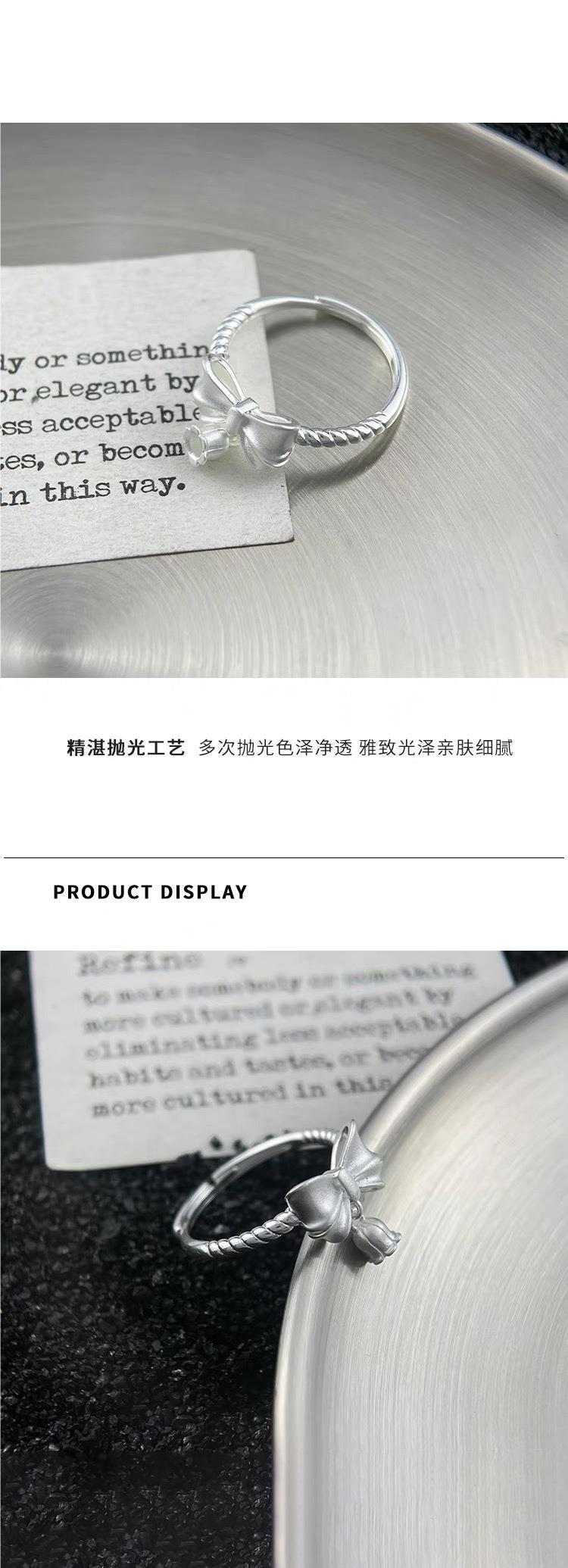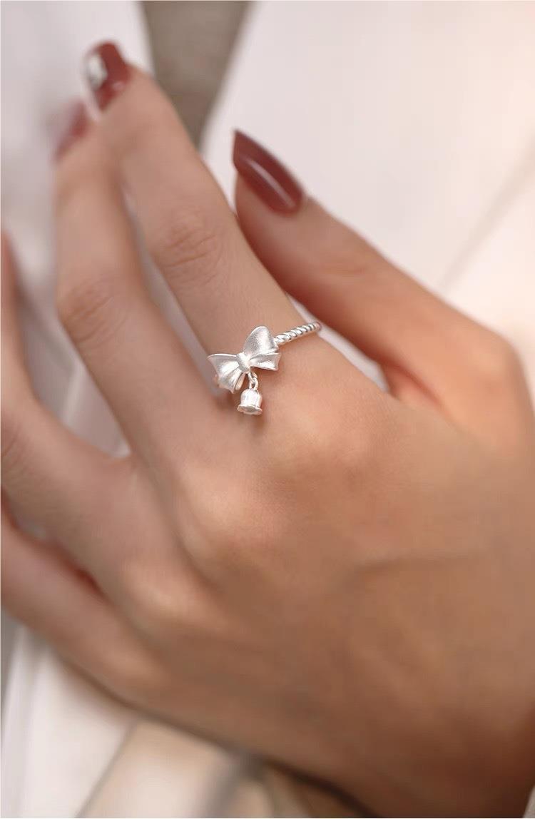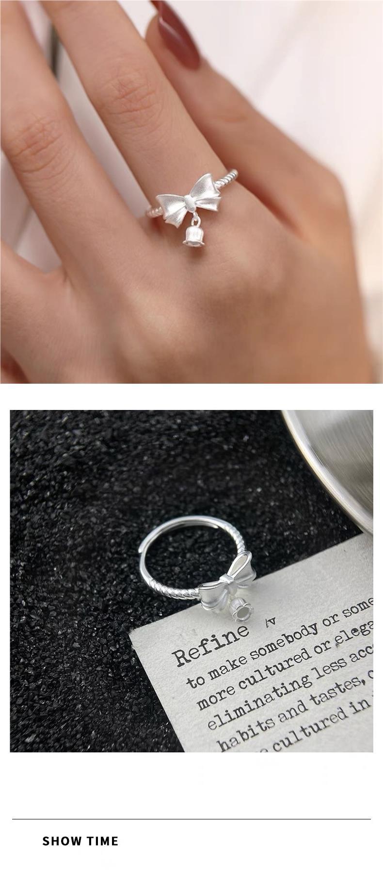 Anillo Colgante de Flor de Lirio de los Valles para Mujer, Anillo Abierto de Temperamento de Lazo Dulce, Anillo de Dedo Índice de Moda Versátil y Trendy