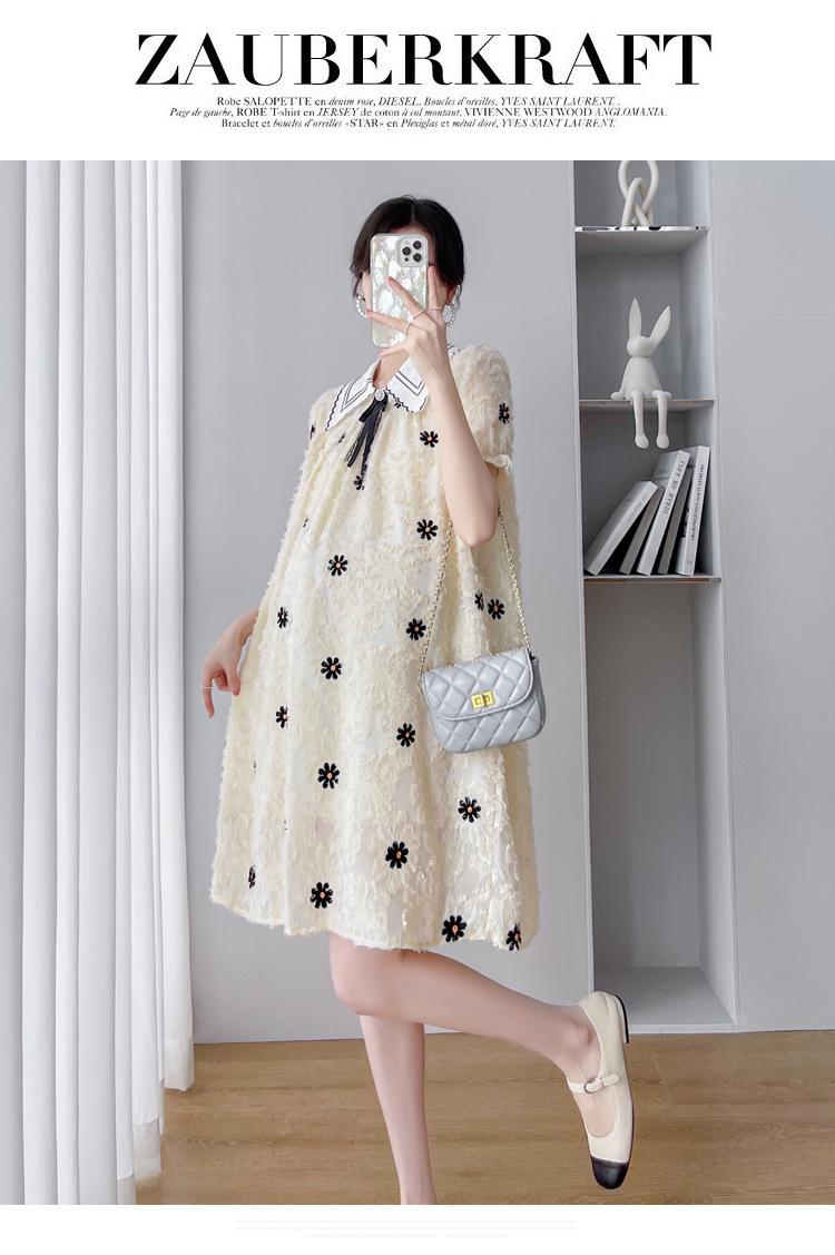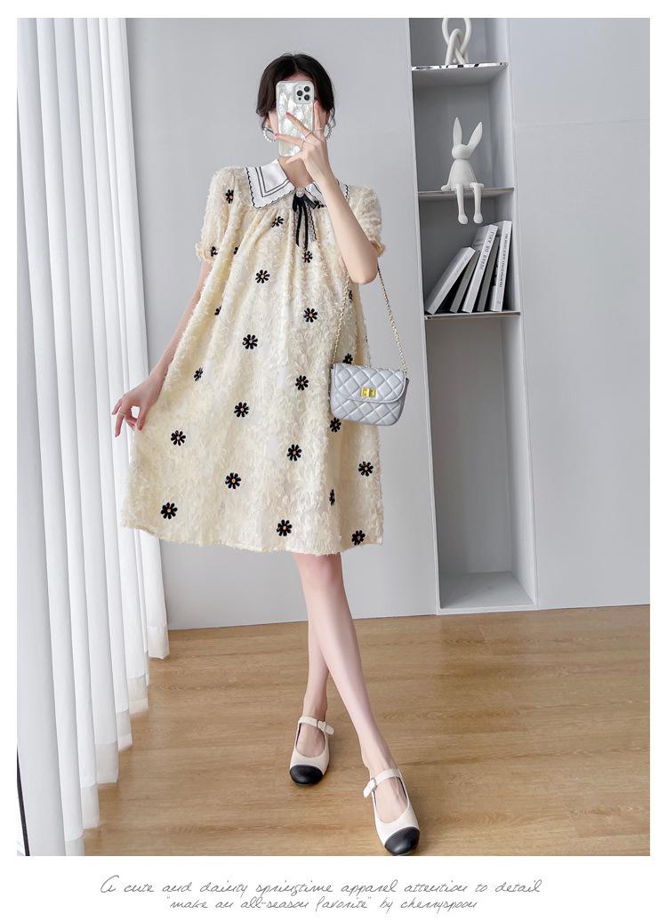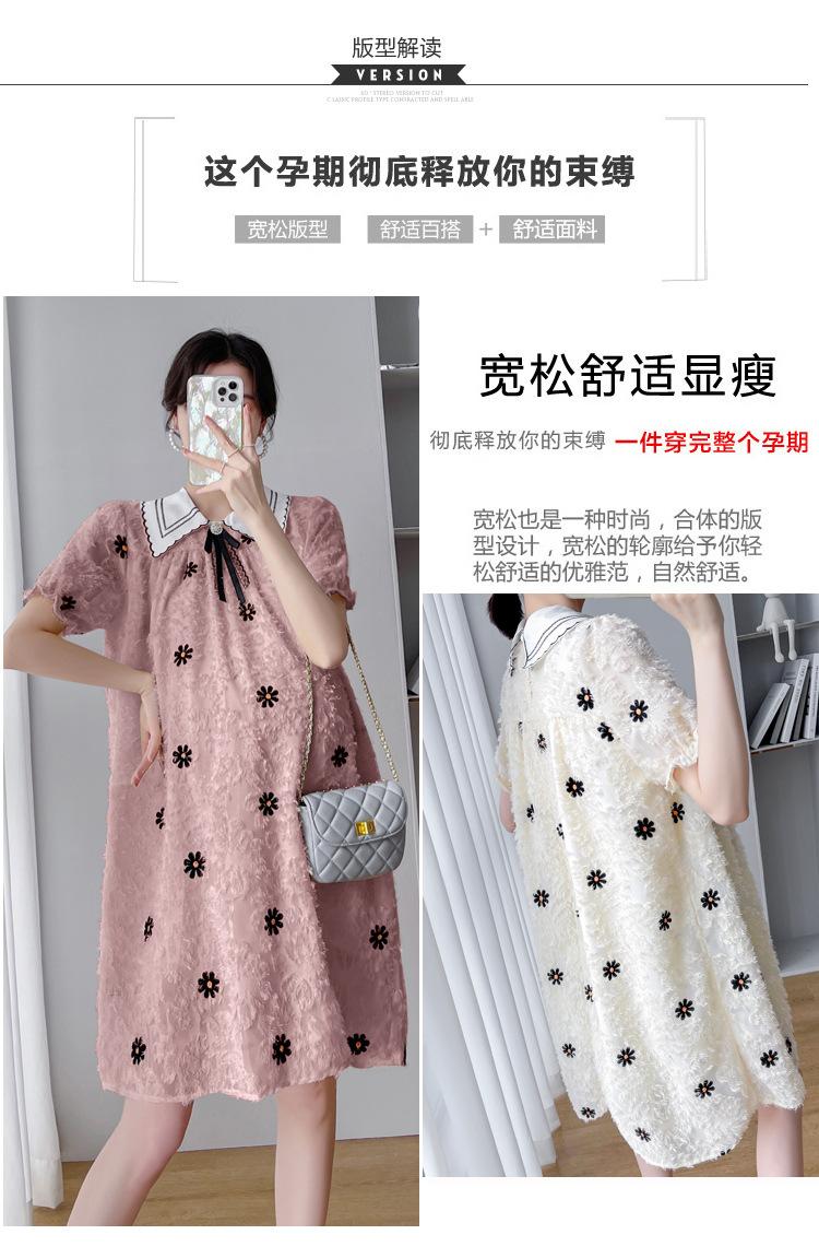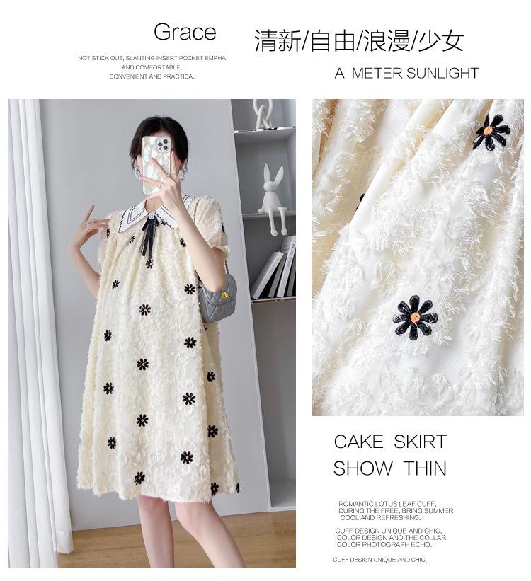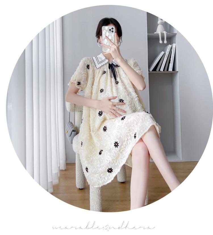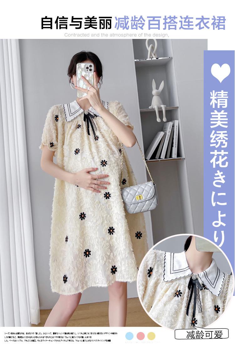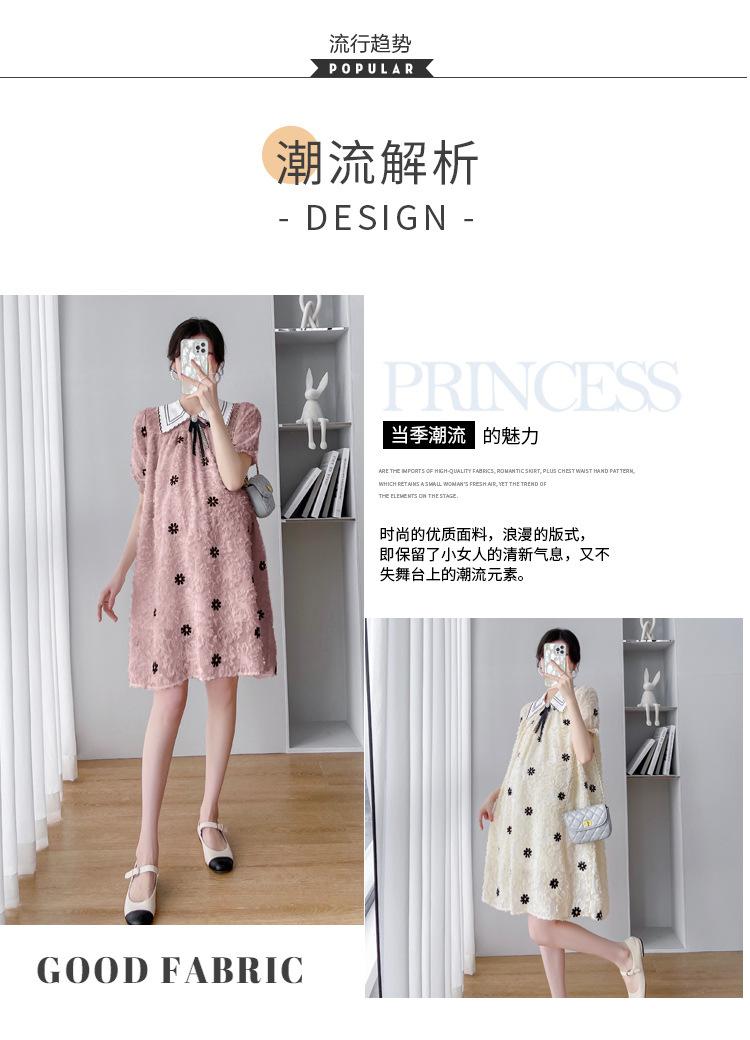 Ropa de Maternidad 2024 Verano Nueva Moda Bordado Jacquard Solapa Lazo Suelto Talla Grande Vestido de Maternidad