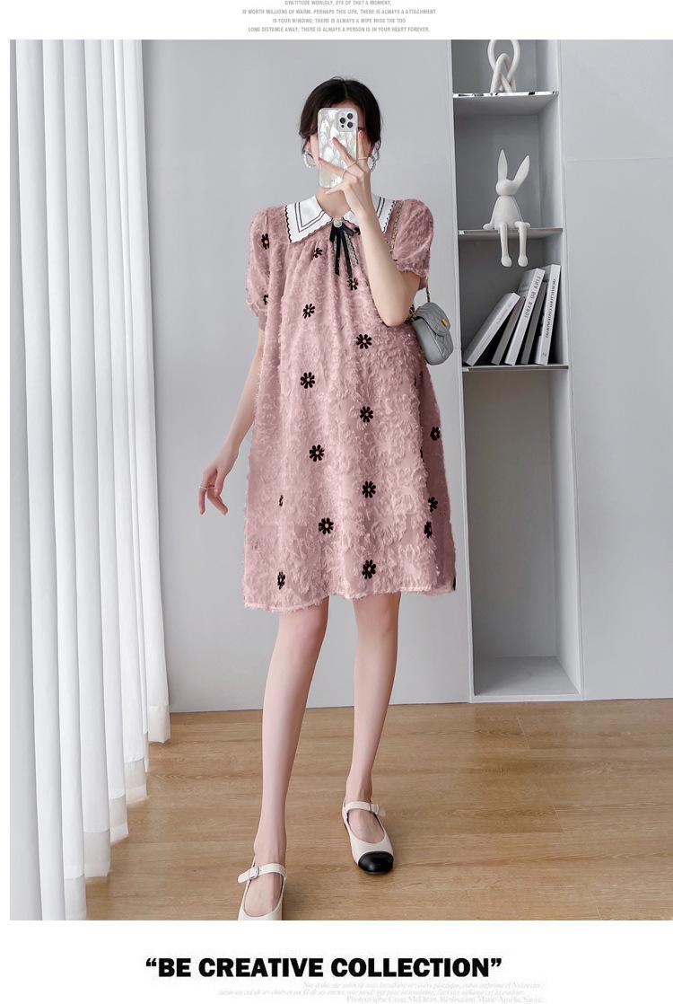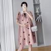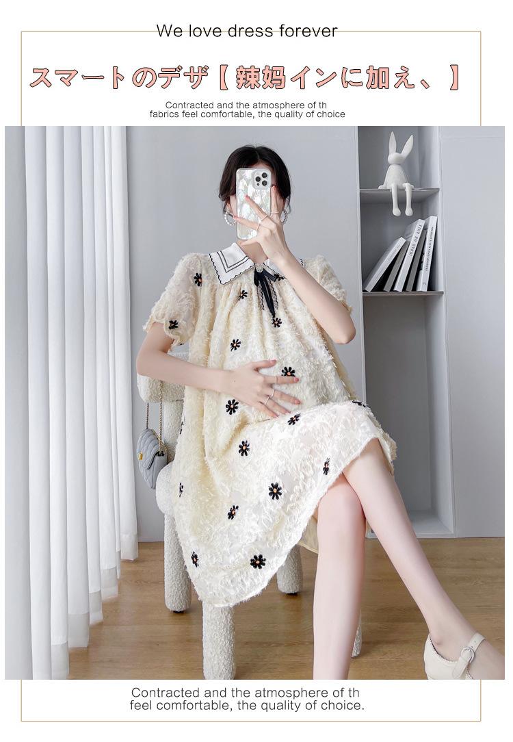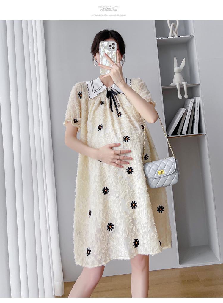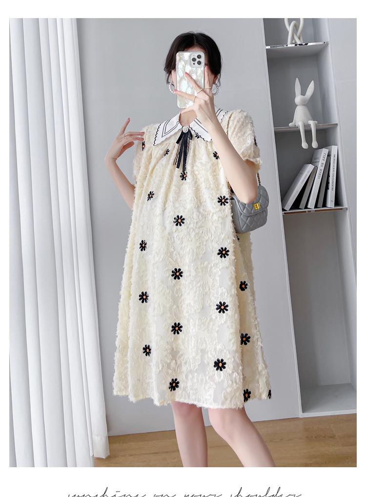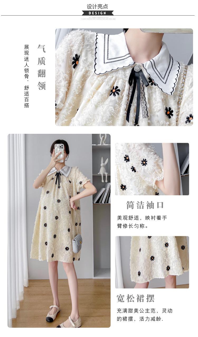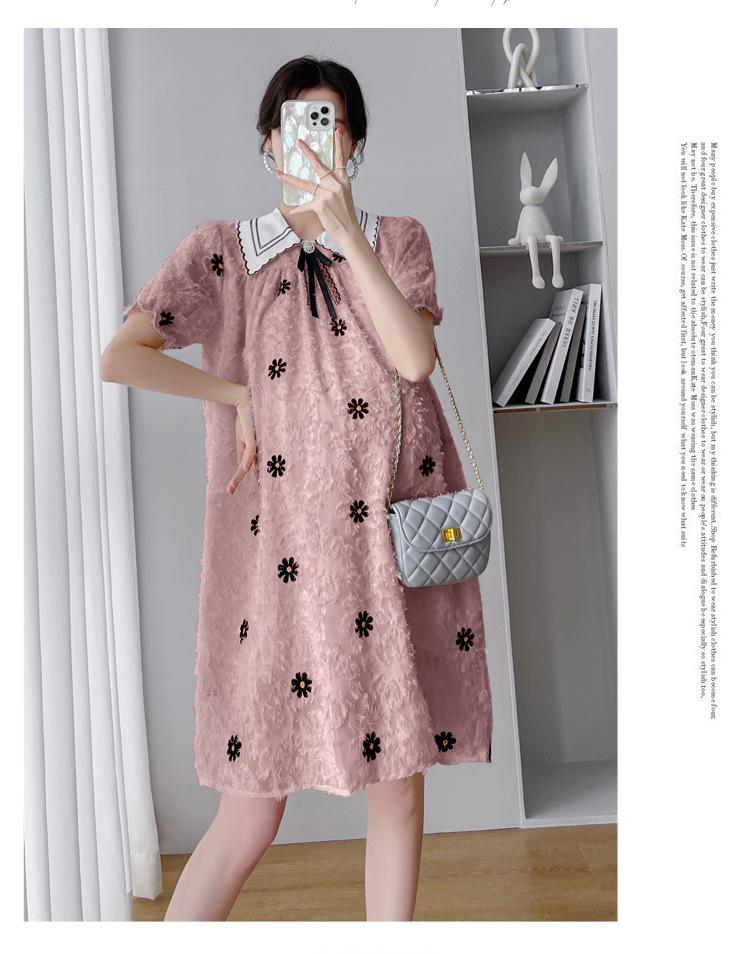 Ropa de Maternidad 2024 Verano Nueva Moda Bordado Jacquard Solapa Lazo Suelto Talla Grande Vestido de Maternidad