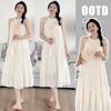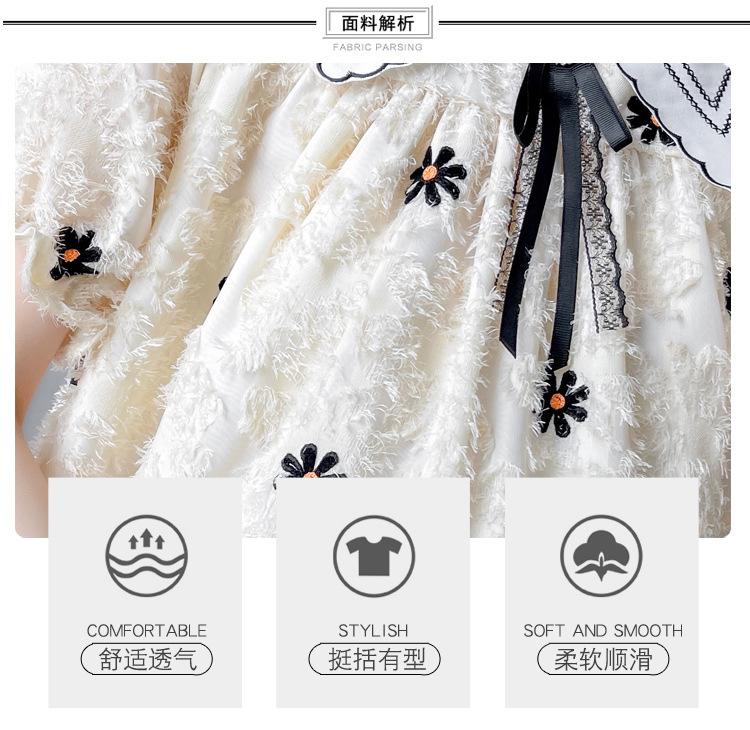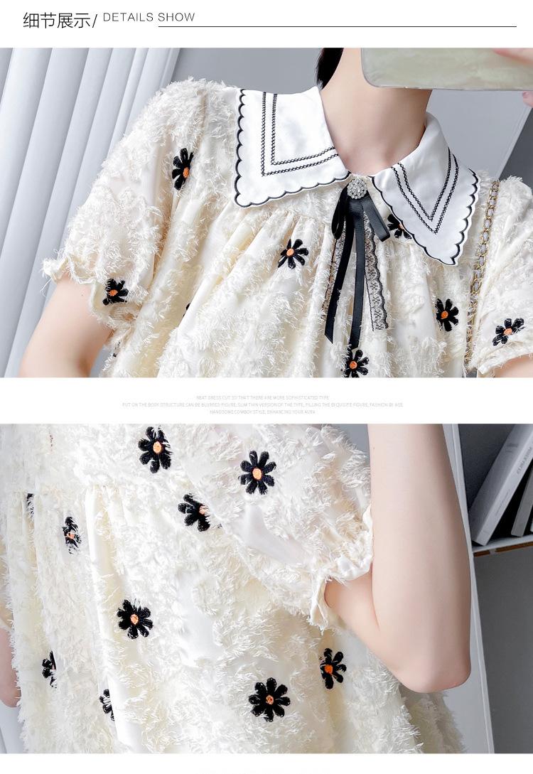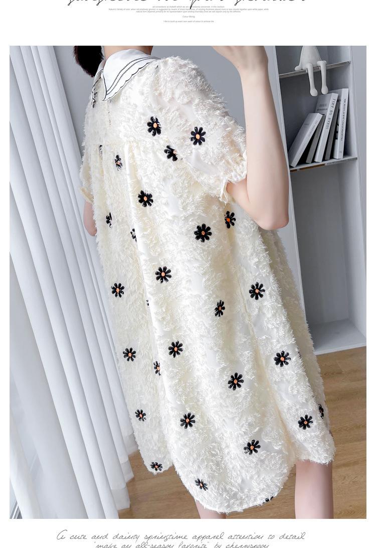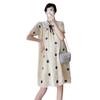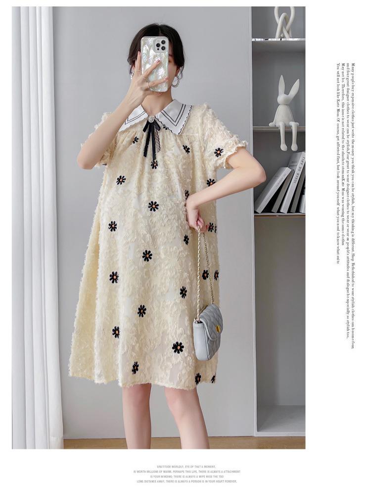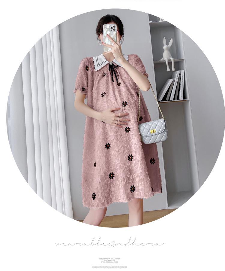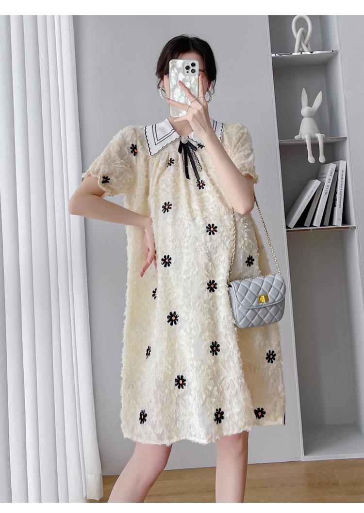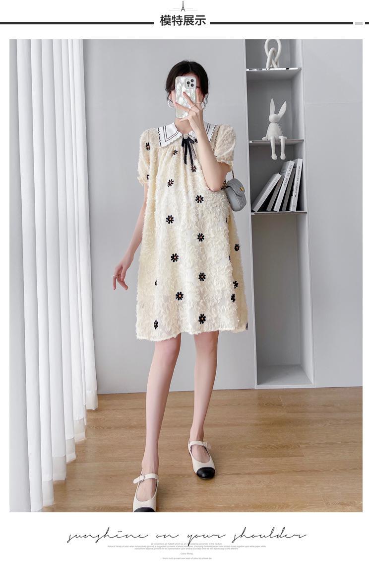 Ropa de Maternidad 2024 Verano Nueva Moda Bordado Jacquard Solapa Lazo Suelto Talla Grande Vestido de Maternidad