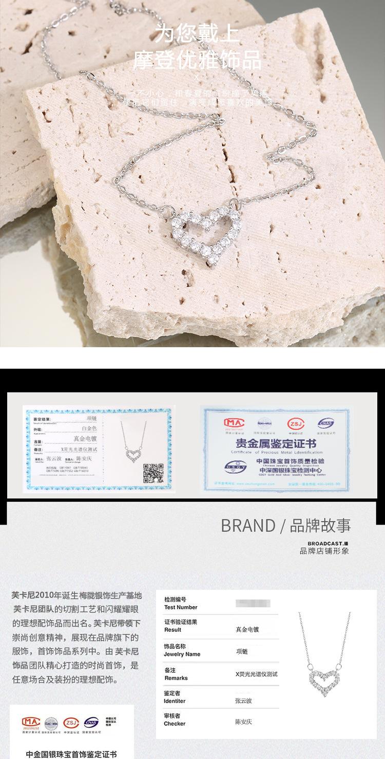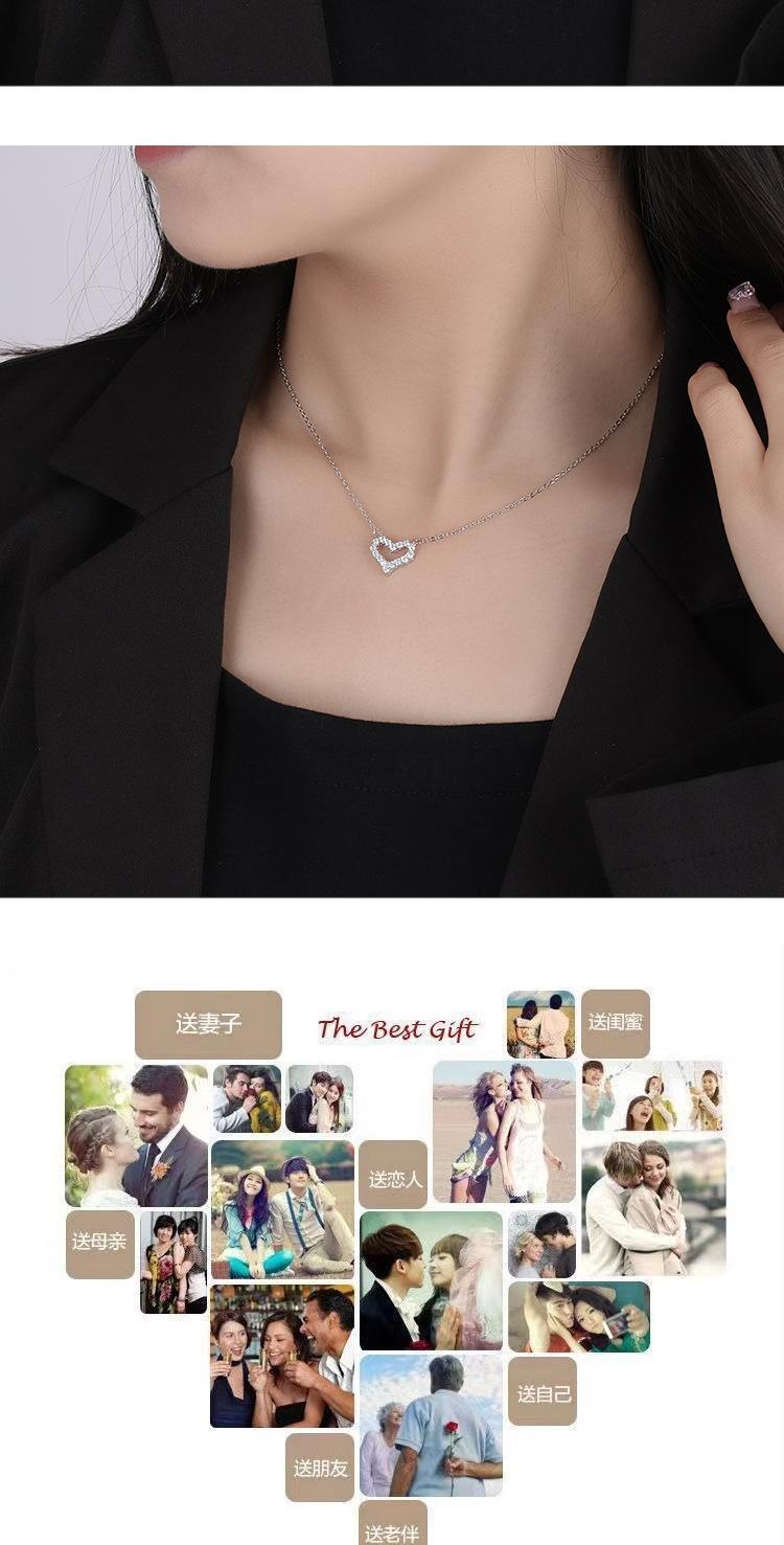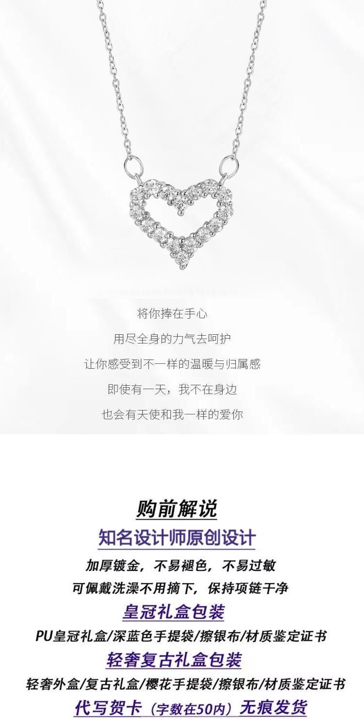 Ventilador qi de acero de titanio de un metro con versión coreana de micro incrustación collar de amor moda versátil diamante completo hueco en forma de corazón cadena para clavícula