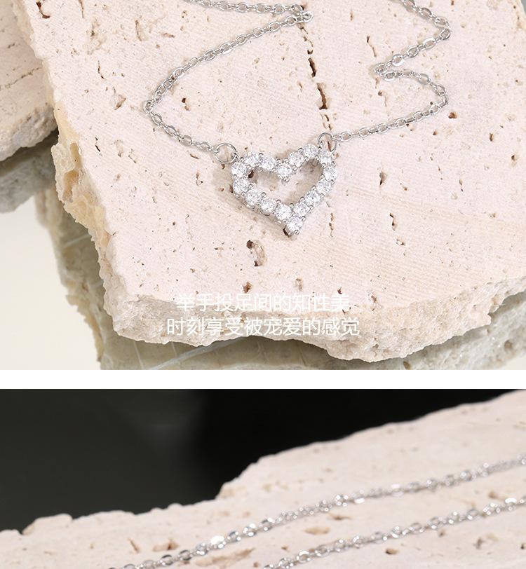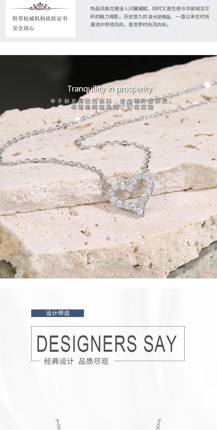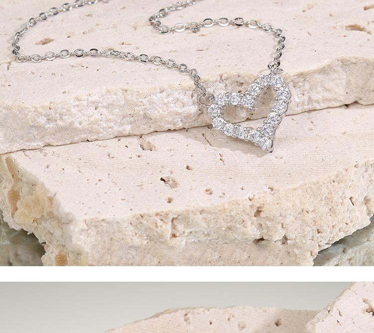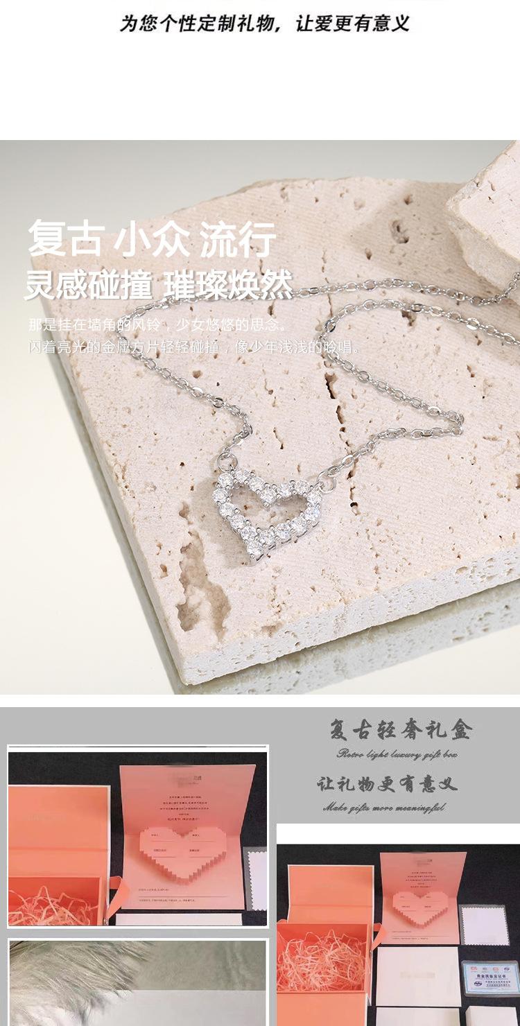 Ventilador qi de acero de titanio de un metro con versión coreana de micro incrustación collar de amor moda versátil diamante completo hueco en forma de corazón cadena para clavícula