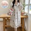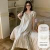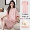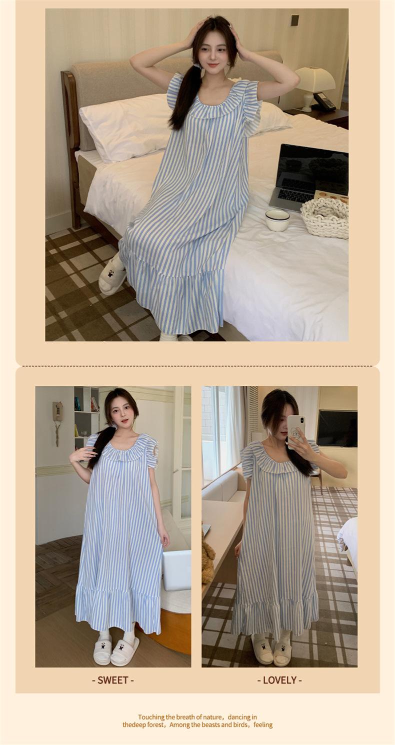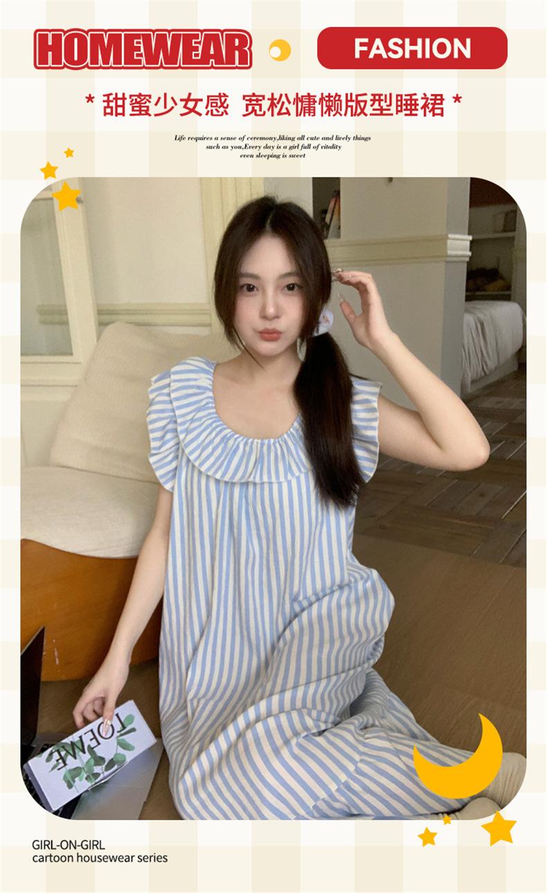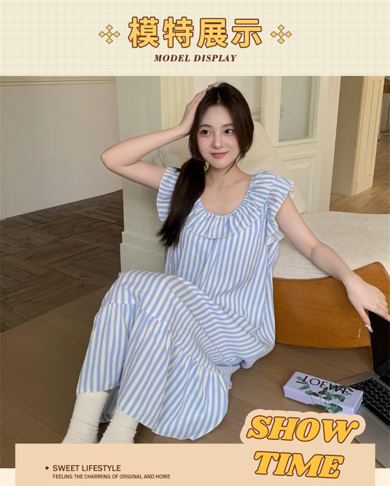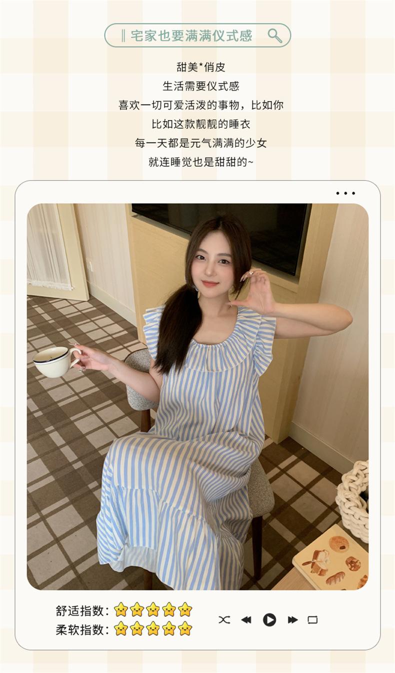 Camisón de verano para mujer, sin mangas, con almohadilla en el pecho, estilo dulce, a rayas, de algodón con nubes, con falda y mangas pequeñas, pijama para el hogar