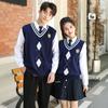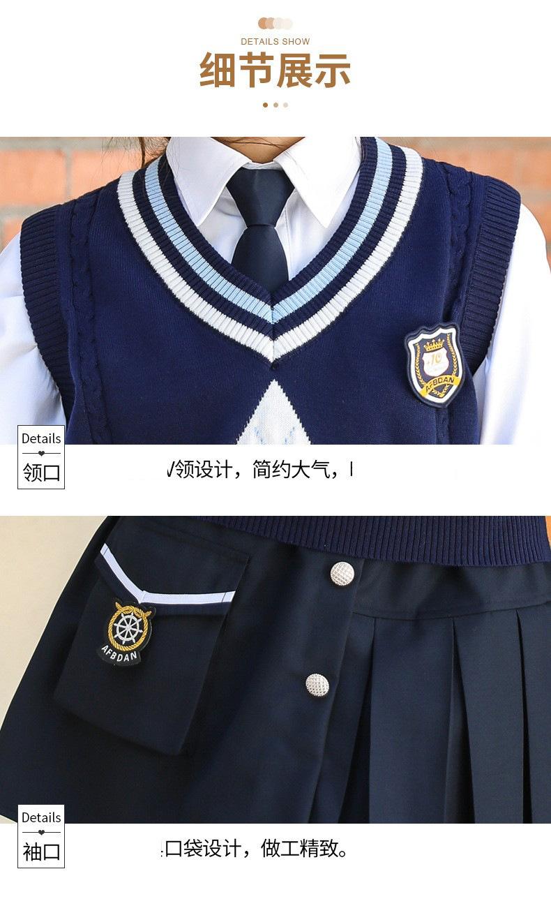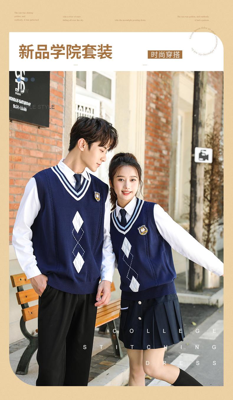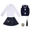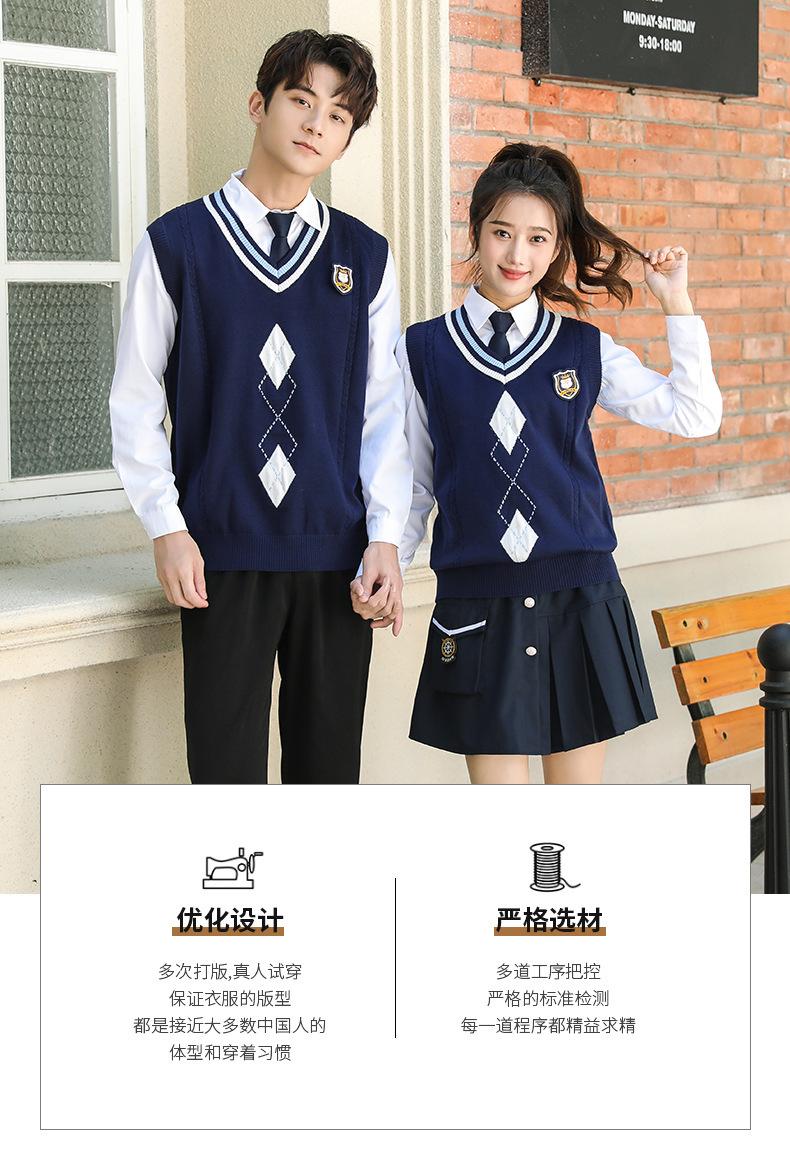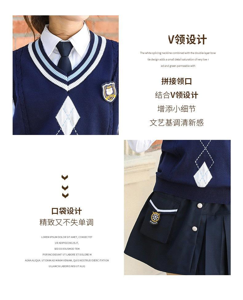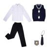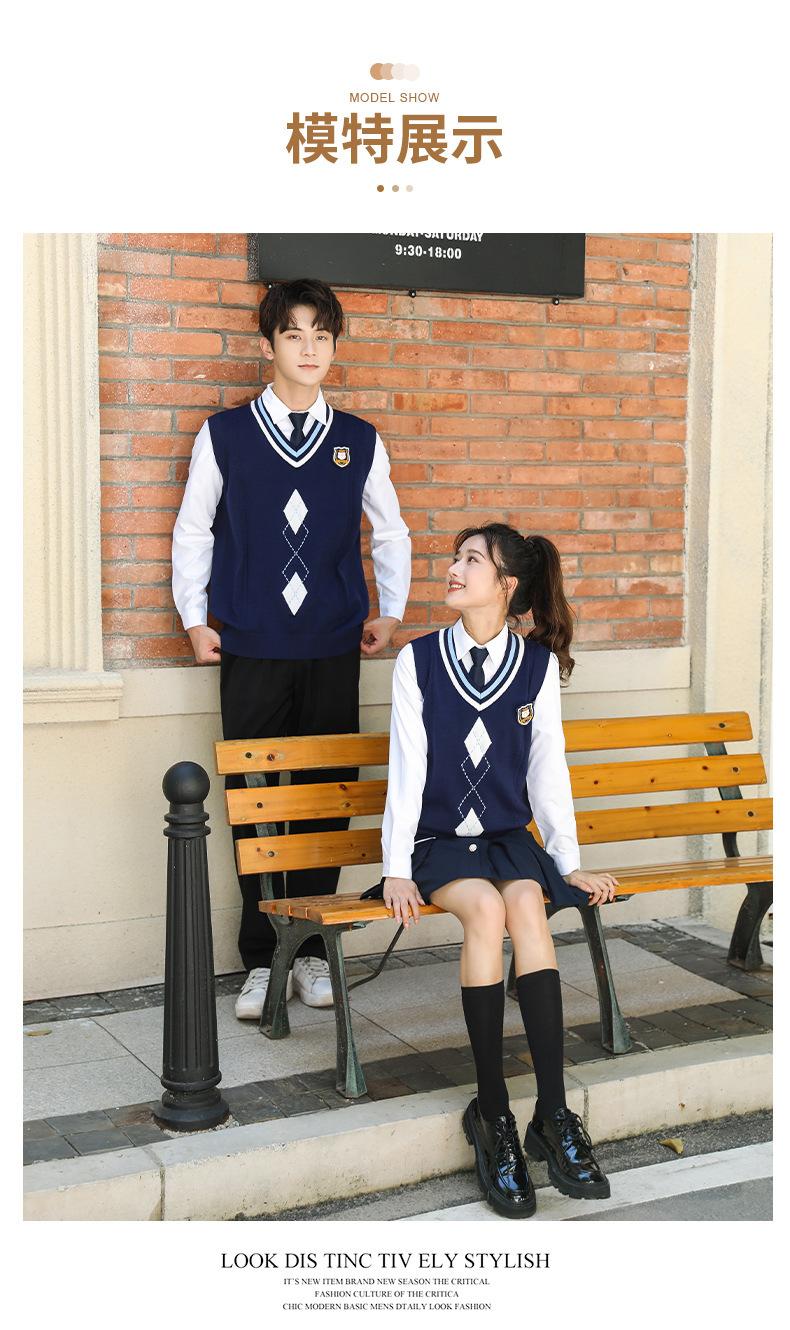 Women's diamond vest + white long sleeve + Pocket Skirt + Blue Tie + badge, Men's rhombus vest + white long sl...