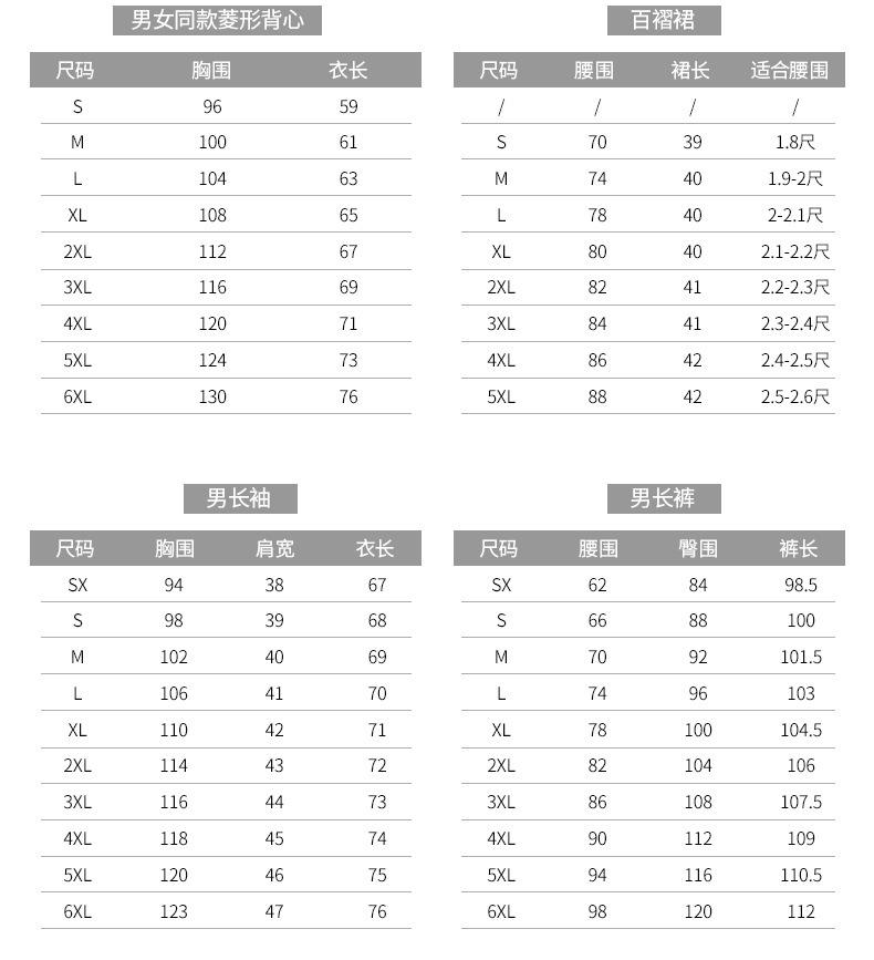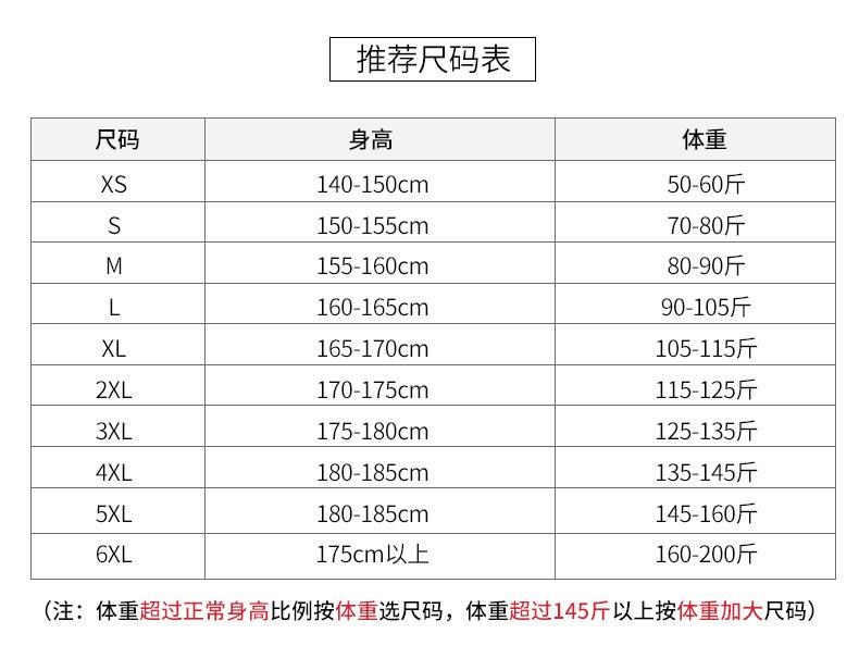 XS, S, M, L, XL, XXL, 3XL, 4XL, 5XL, 6XL