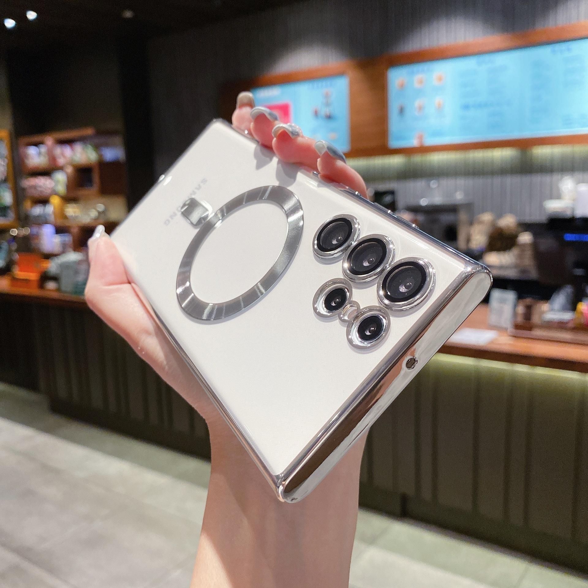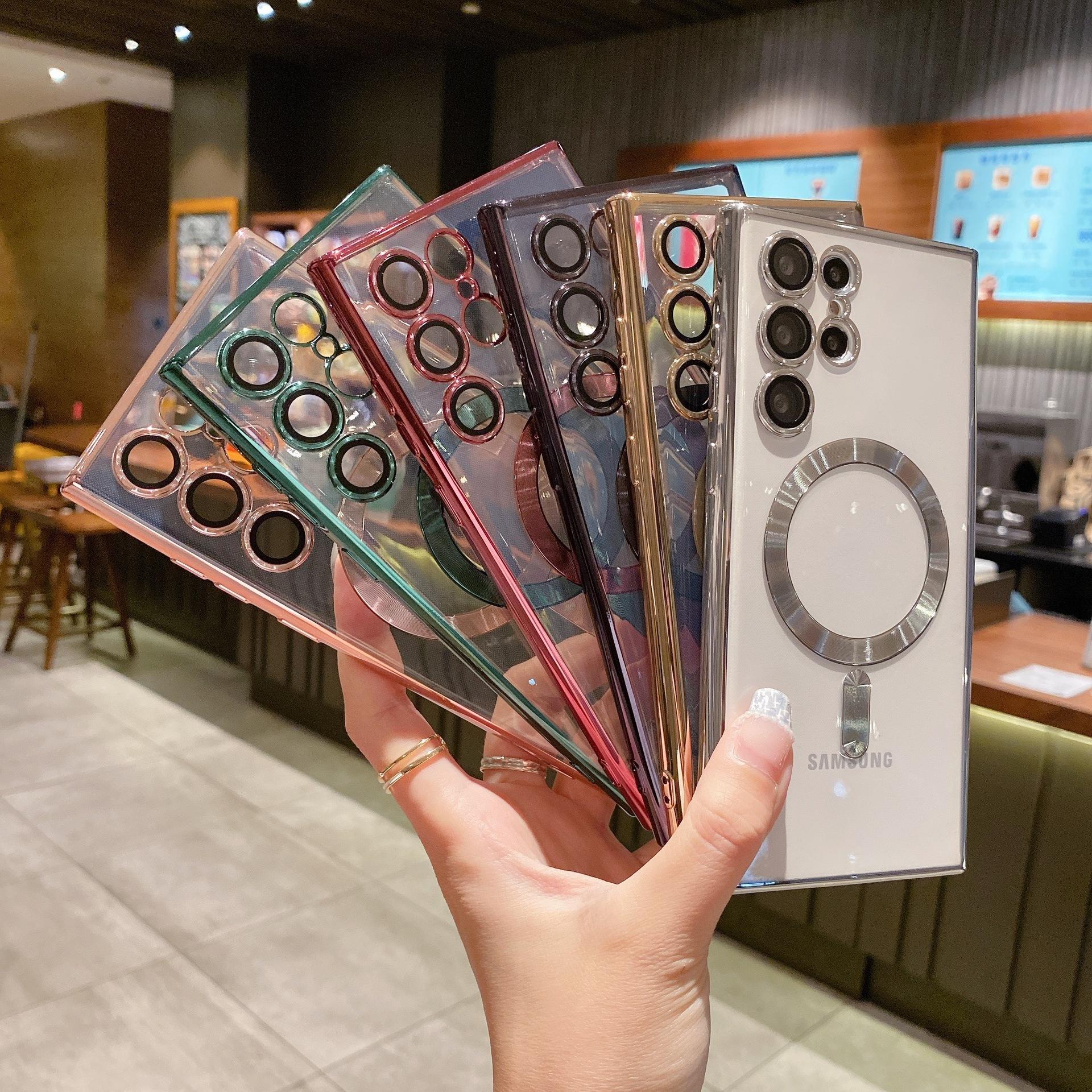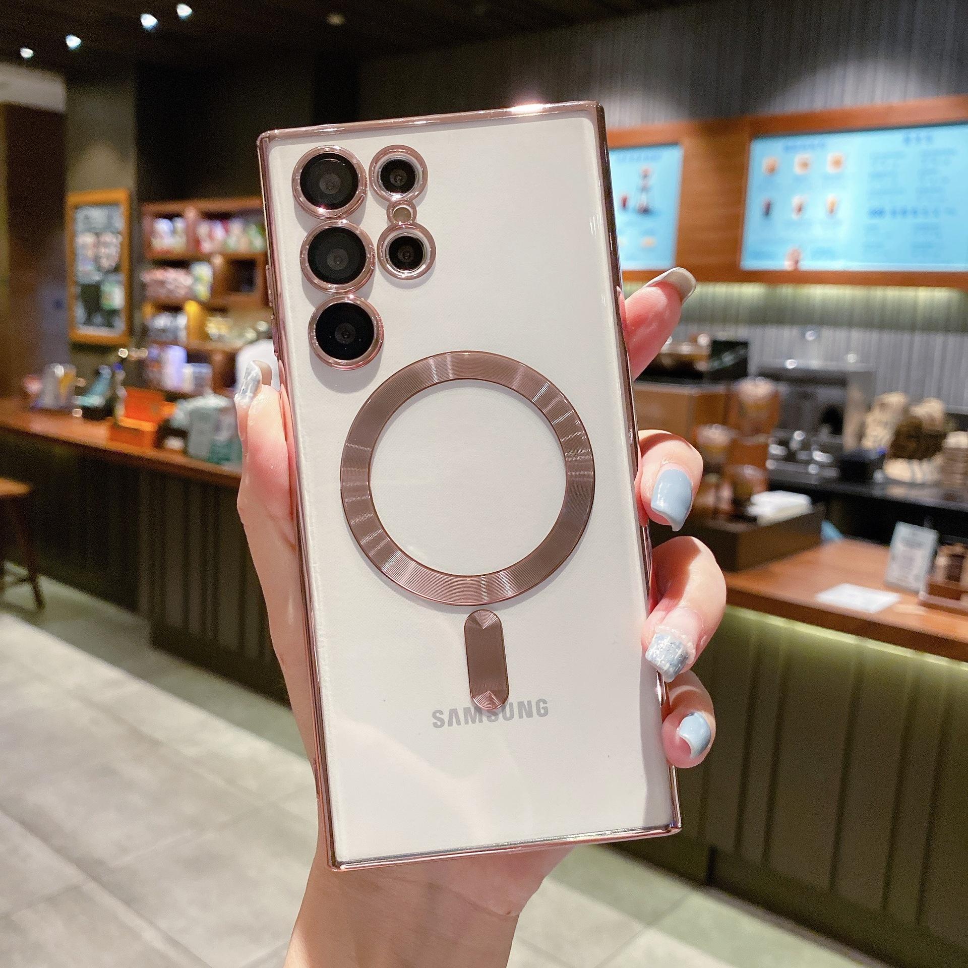 Viene con Película para Lente Adecuado para Samsung S23Ultra Funda para Teléfono Móvil Electrochapada S22Plus Carcasa Blanda S21 Funda Magnética Transparente