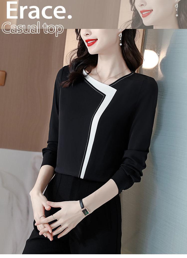 Camisa Antiarrugas Diseño de Nicho con Sentido de la Moda para Mujer Nuevo Top Holgado de Manga Larga para Principios de Otoño Camisa de Chifón Occidental de Moda