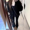 Jeans Acampanados Negros para Mujer Primavera y Verano 2025 Nueva Llegada Pequeña Cintura Alta Corte Ajustado Combinan con Todo Pantalones Micro-acampanados