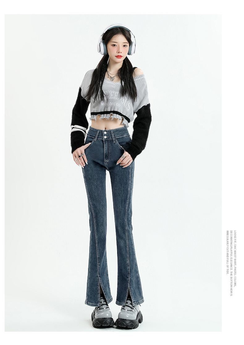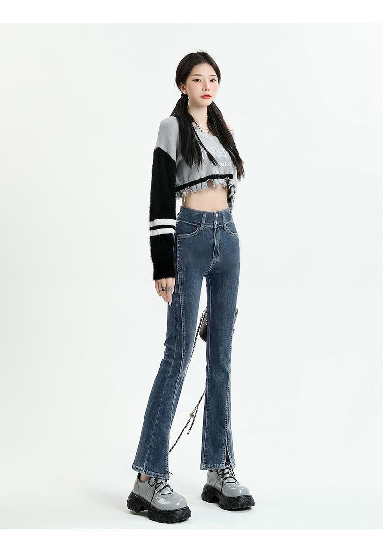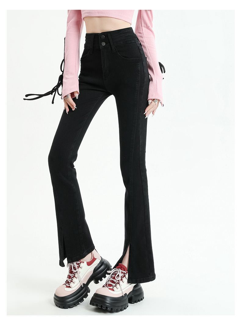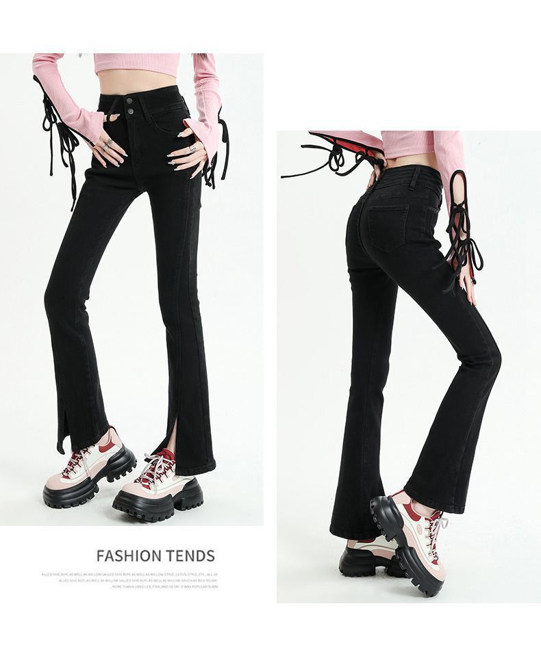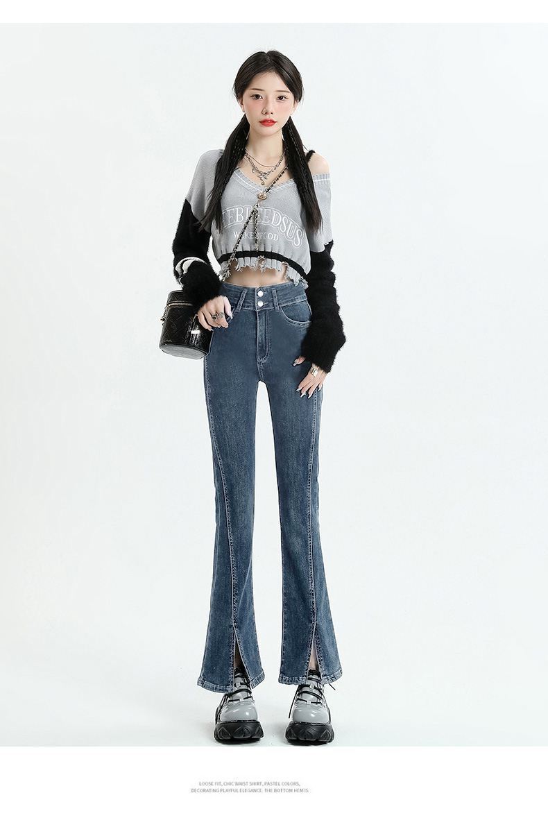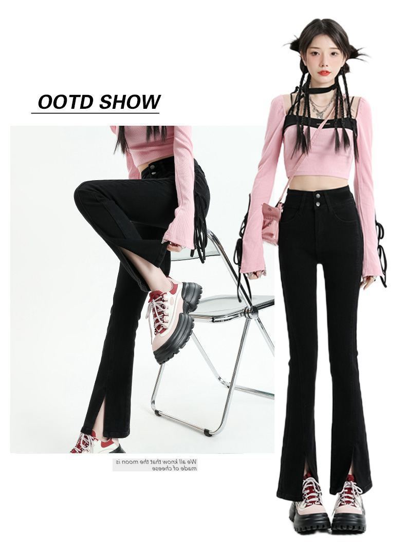 Pantalones vaqueros micro divididos para mujer, nuevos pantalones acampanados ajustados de cintura alta de primavera 2025 para niños pequeños, otoño e invierno.