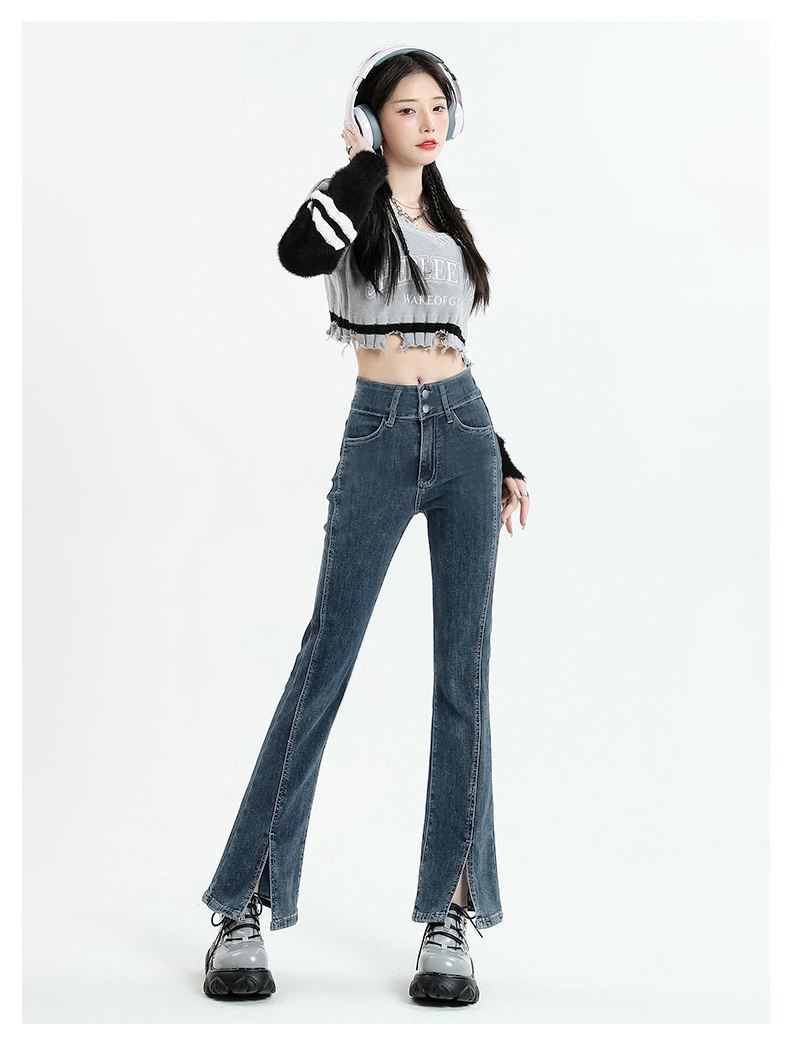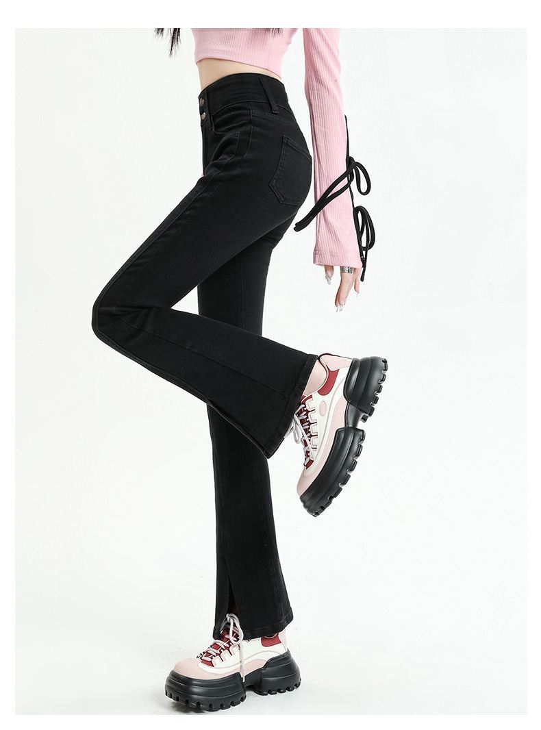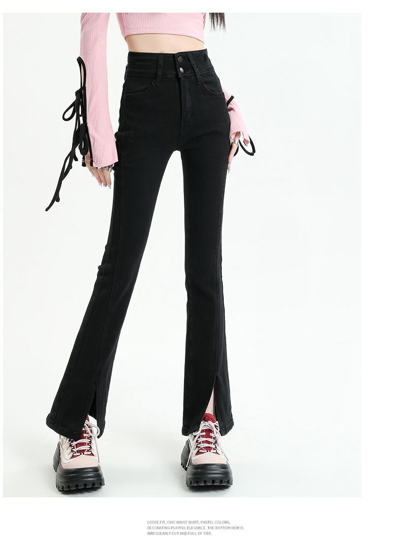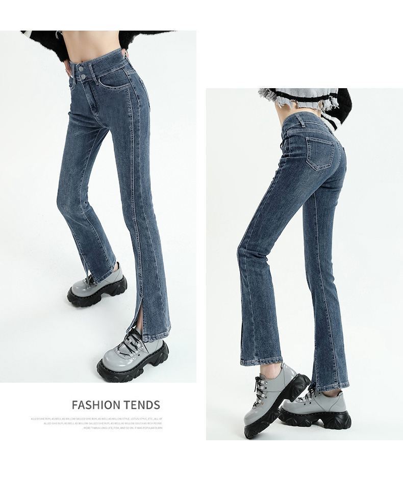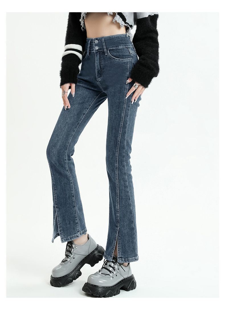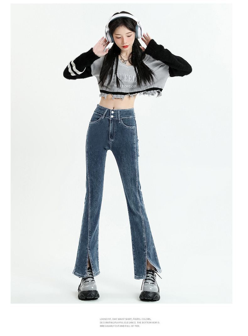 Pantalones vaqueros micro divididos para mujer, nuevos pantalones acampanados ajustados de cintura alta de primavera 2025 para niños pequeños, otoño e invierno.