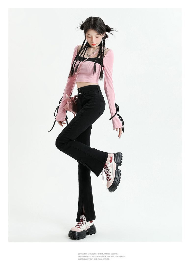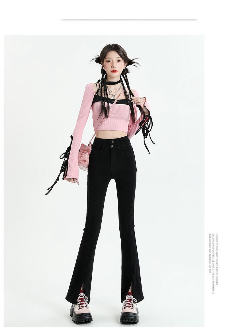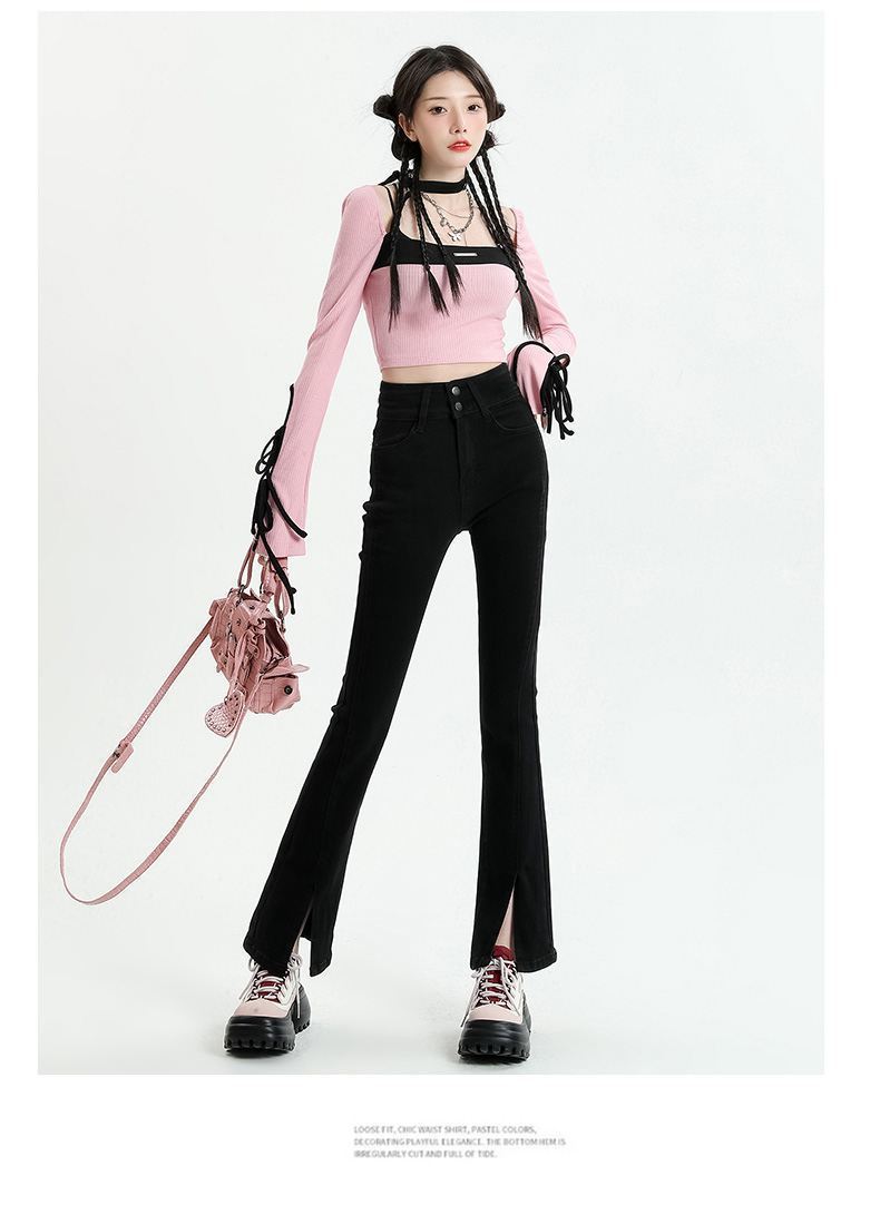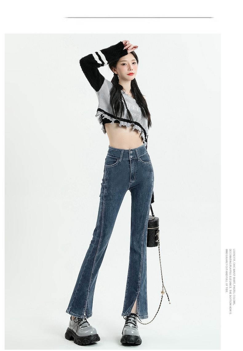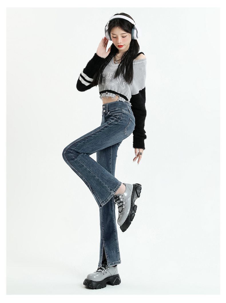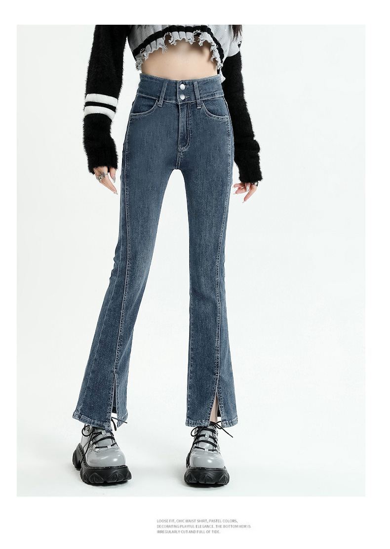 Pantalones vaqueros micro divididos para mujer, nuevos pantalones acampanados ajustados de cintura alta de primavera 2025 para niños pequeños, otoño e invierno.