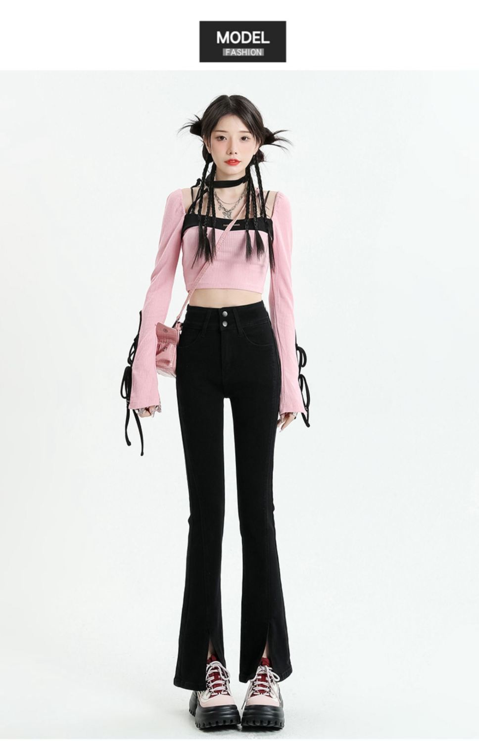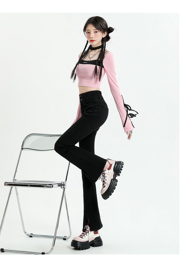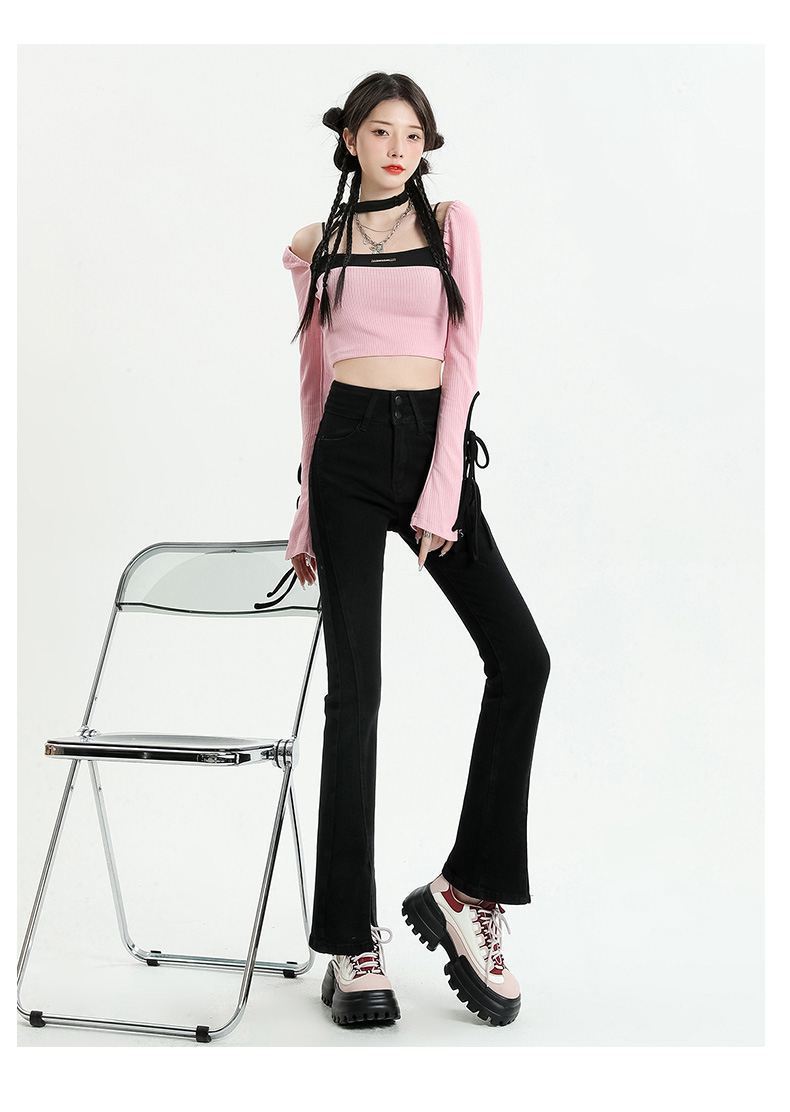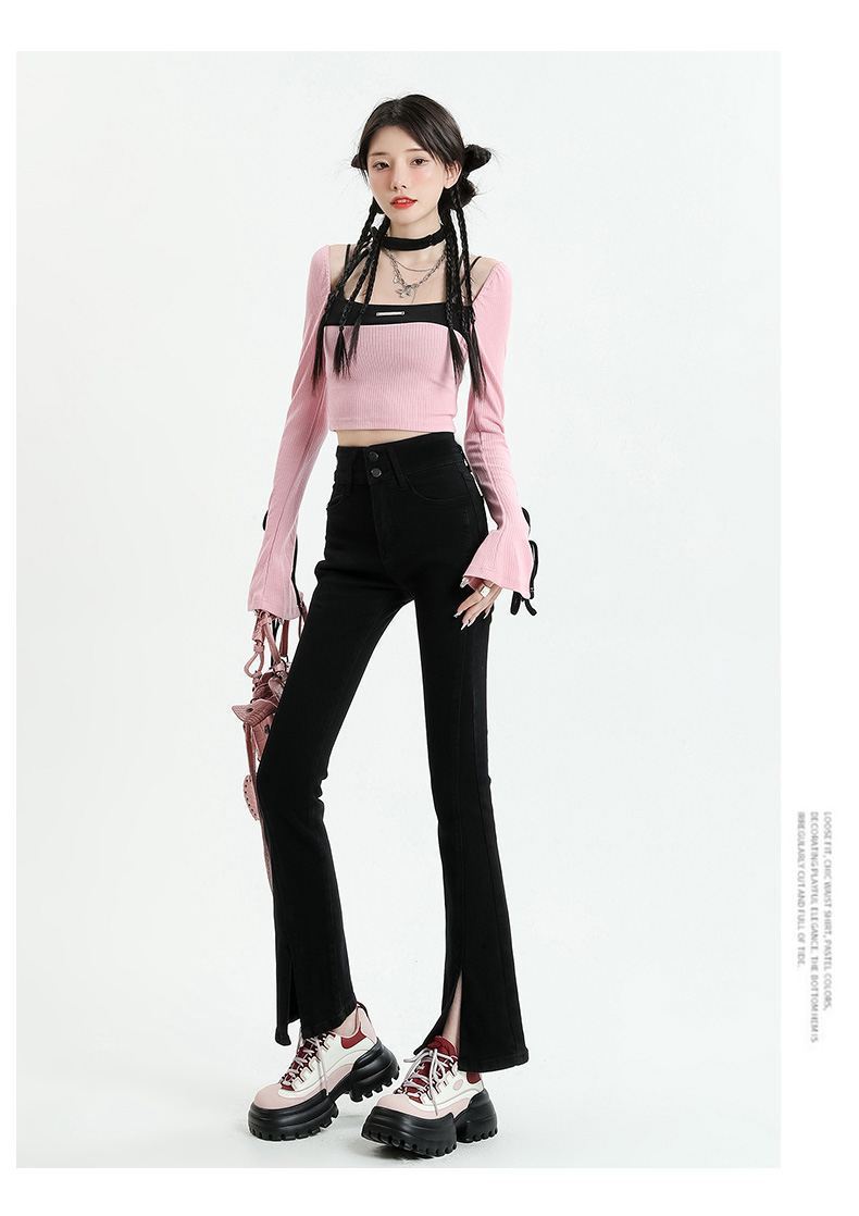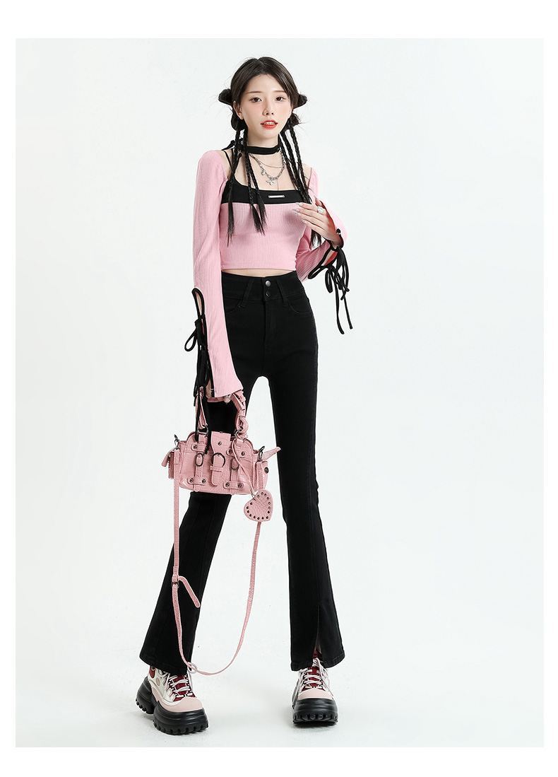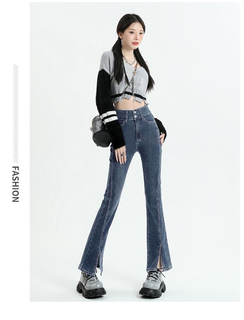 Pantalones vaqueros micro divididos para mujer, nuevos pantalones acampanados ajustados de cintura alta de primavera 2025 para niños pequeños, otoño e invierno.