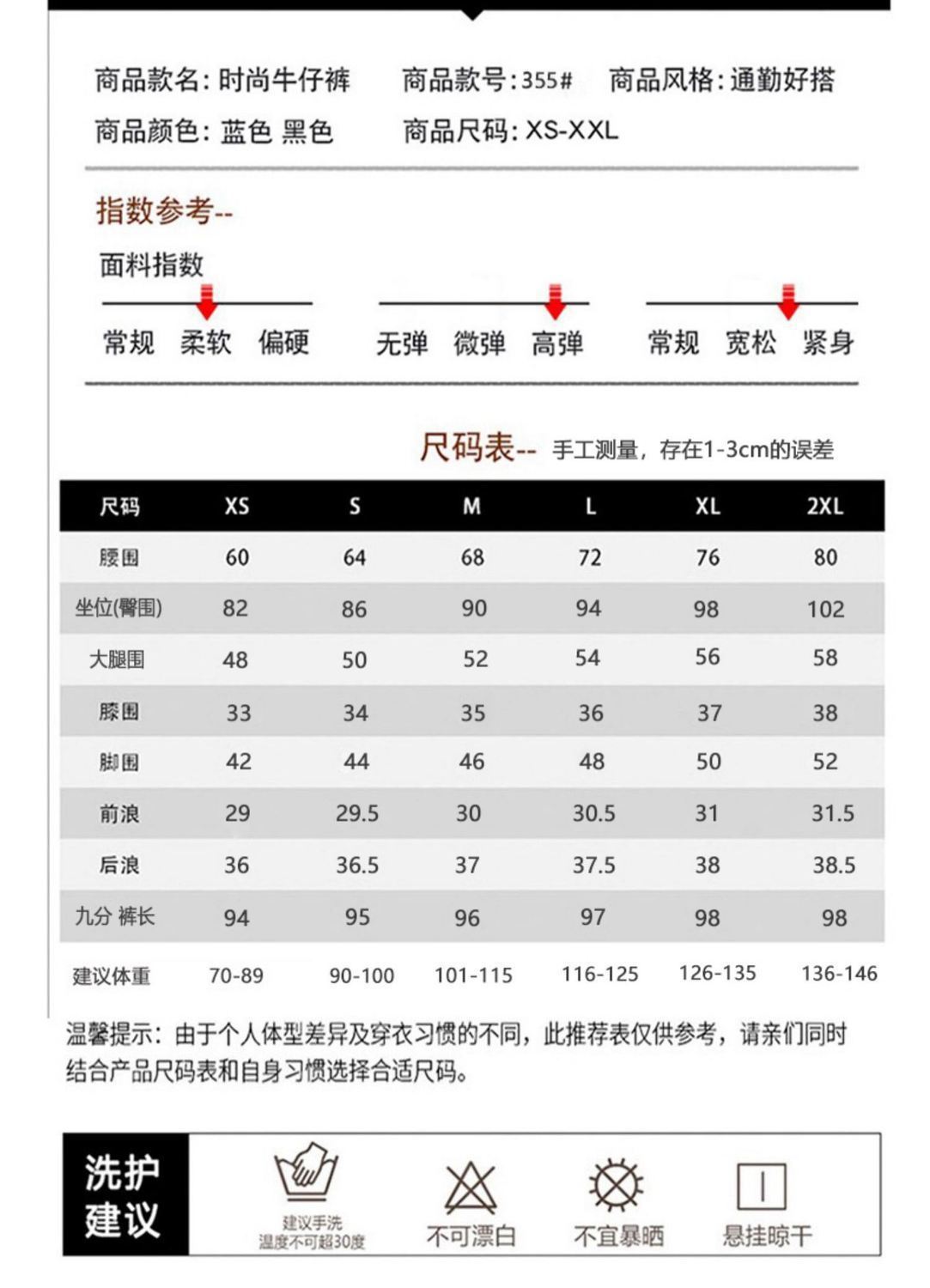 XS, S, M, L, XL, 2XL
