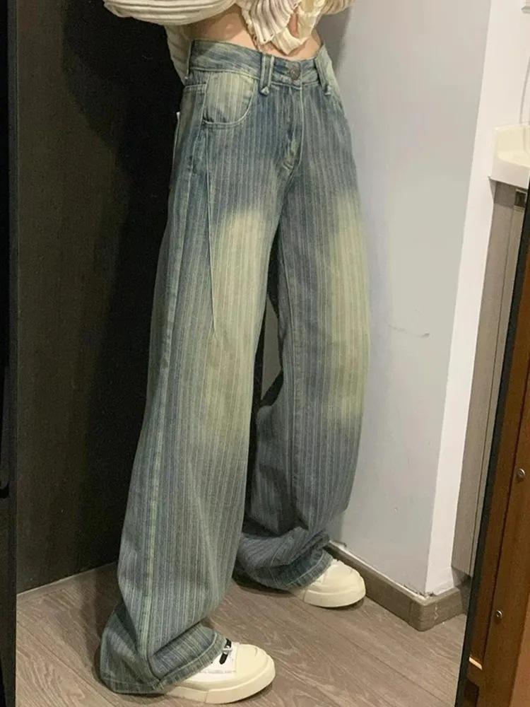 Pantalones vaqueros de pierna ancha estilo americano retro para mujer, primavera y verano 2025, nuevos diseños, pantalones rectos holgados con corte Sense