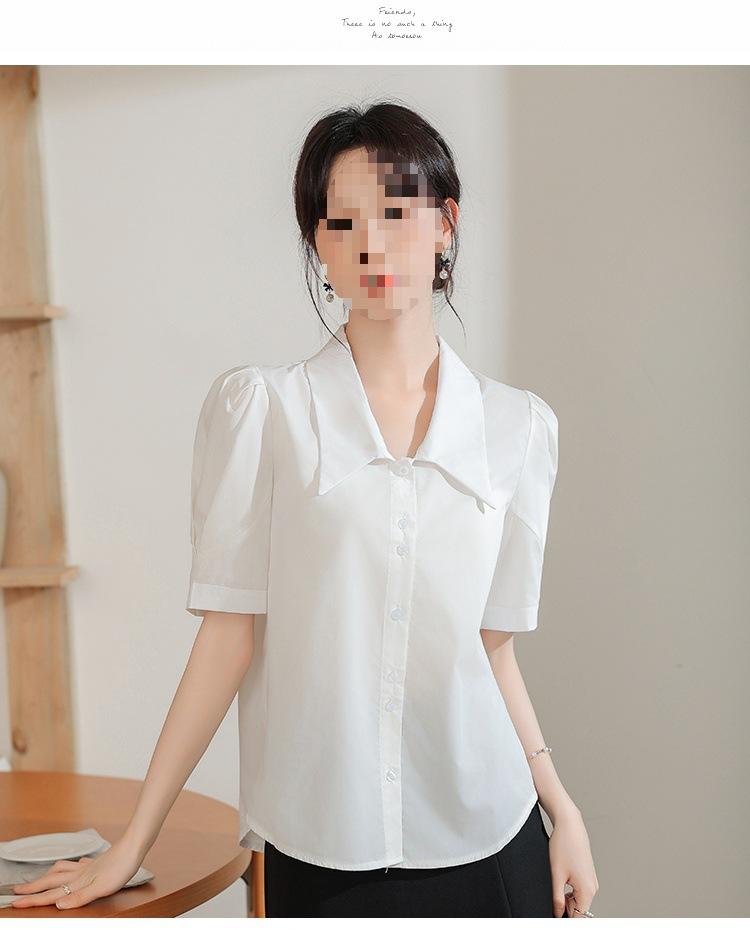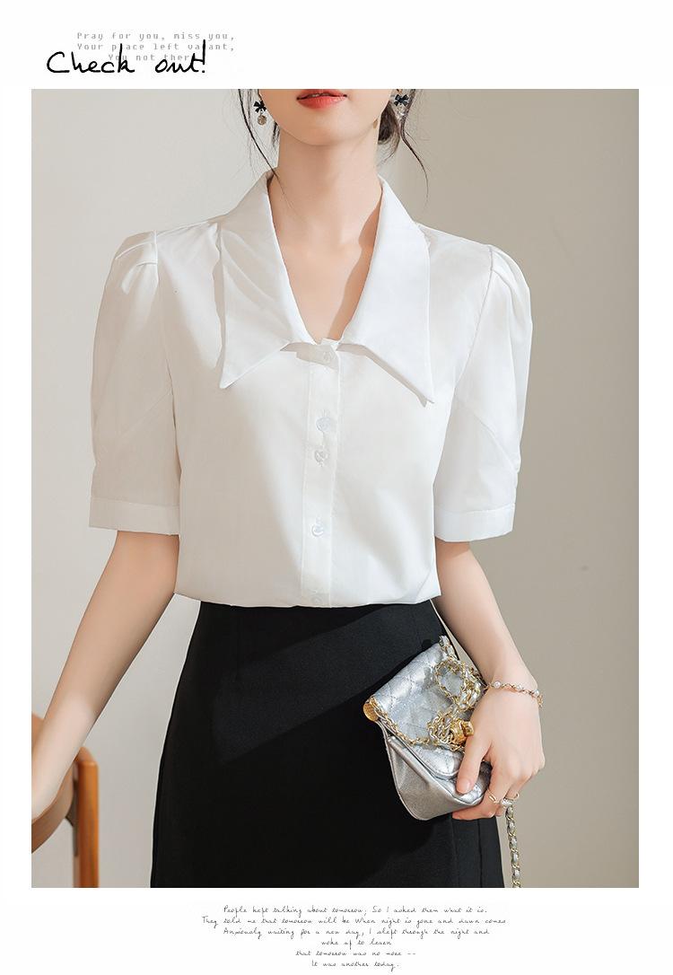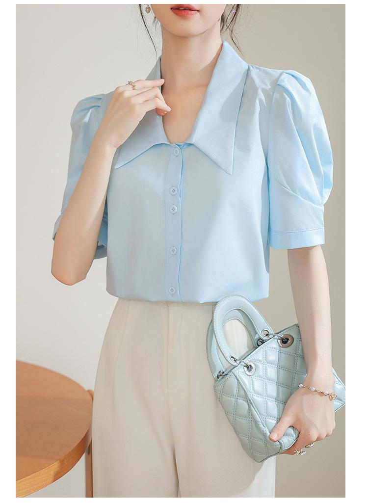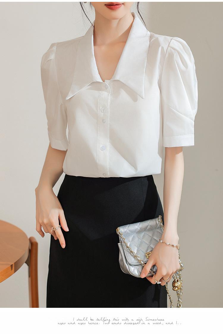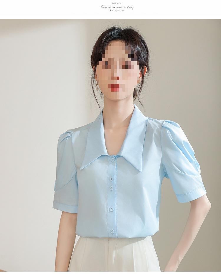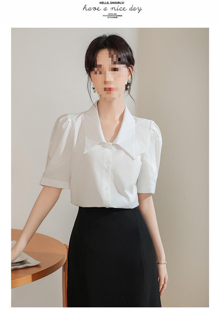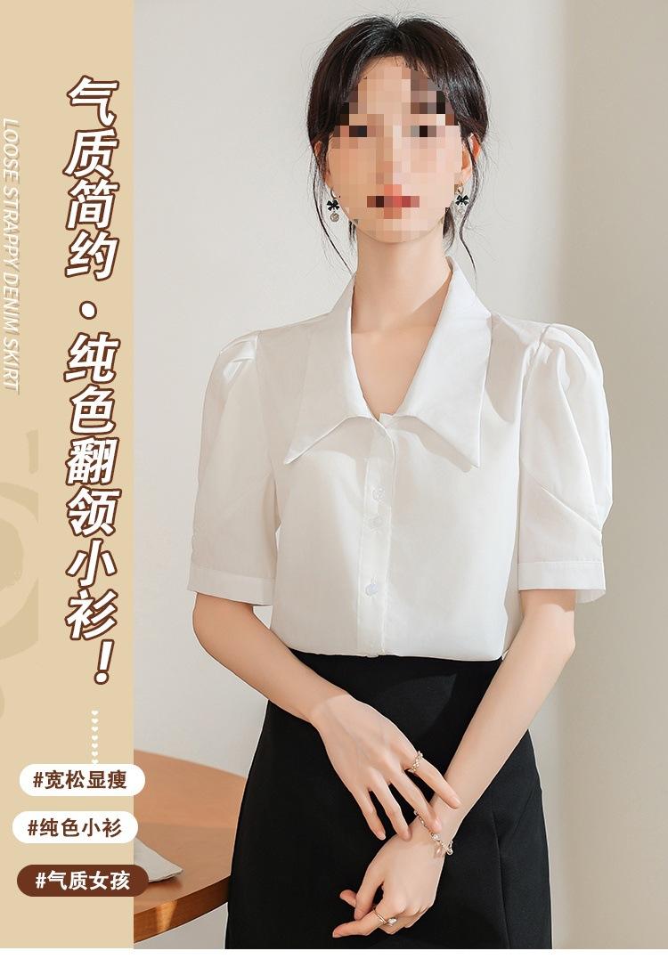 2025 Camisa Tencel Elegante Simple de Cuello de Punta Pequeño para Mujer Verano Nuevo Look Adelgazante Top de Manga Corta