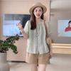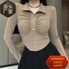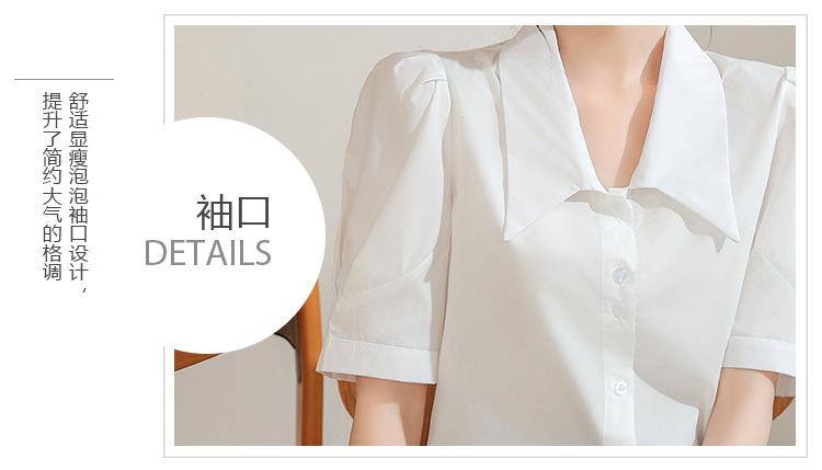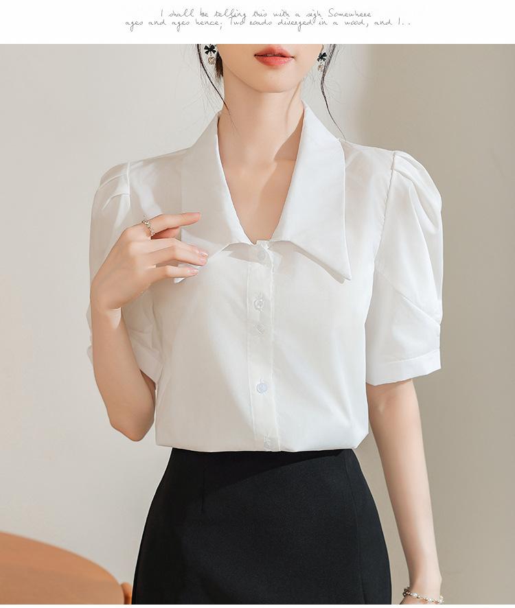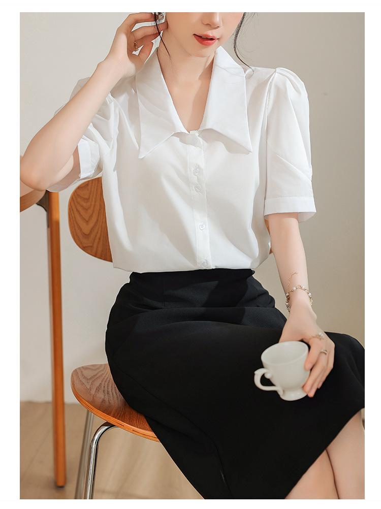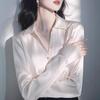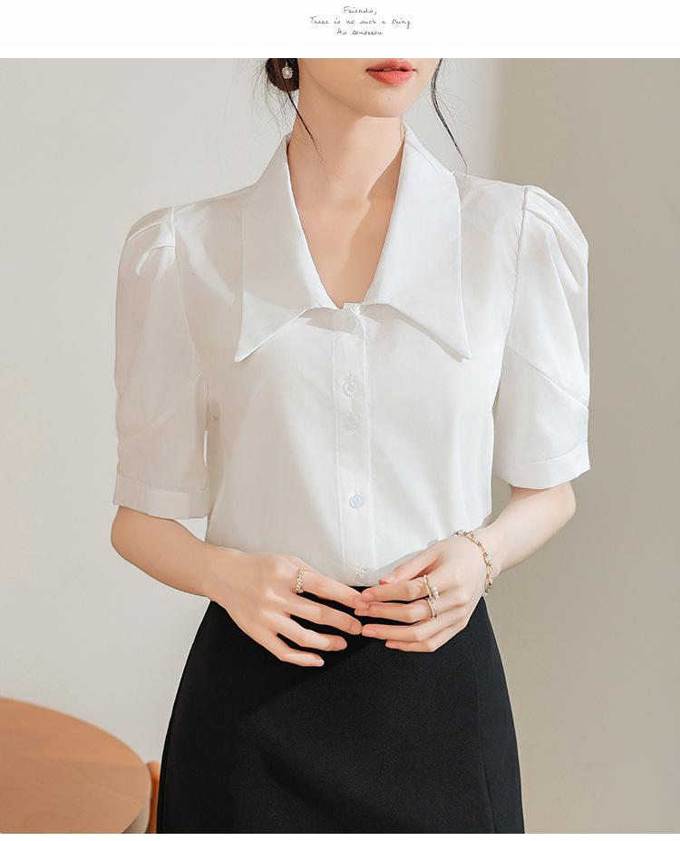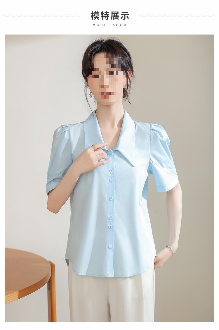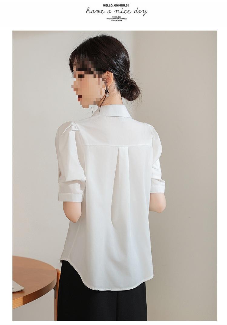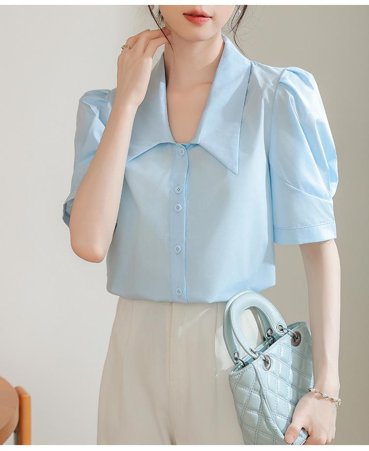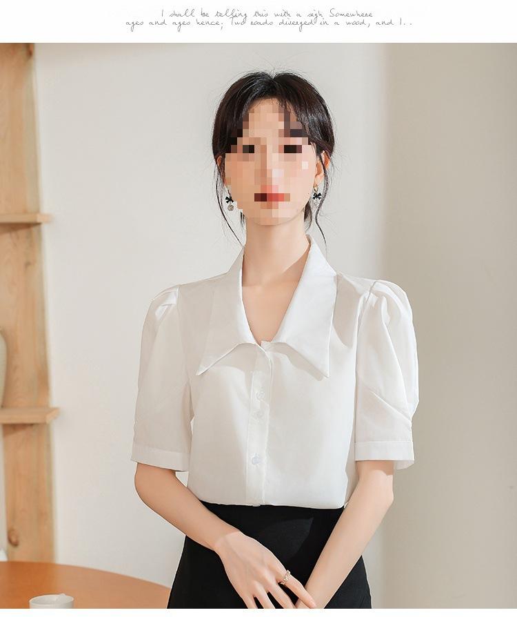 2025 Camisa Tencel Elegante Simple de Cuello de Punta Pequeño para Mujer Verano Nuevo Look Adelgazante Top de Manga Corta