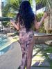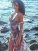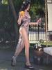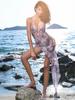 Vestido sexy de cintura alta irregular con abertura y estampado de tirantes para mujer europea y americana, nuevo verano 2025