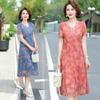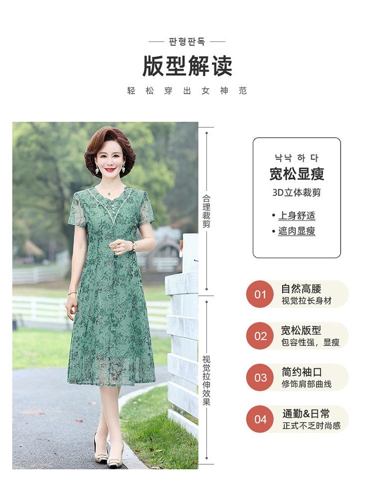 Vestido de verano de madre temperamento nuevo para mujeres de mediana edad estilo extranjero noble 40 50 falda de manga corta de verano de mediana edad