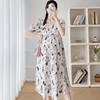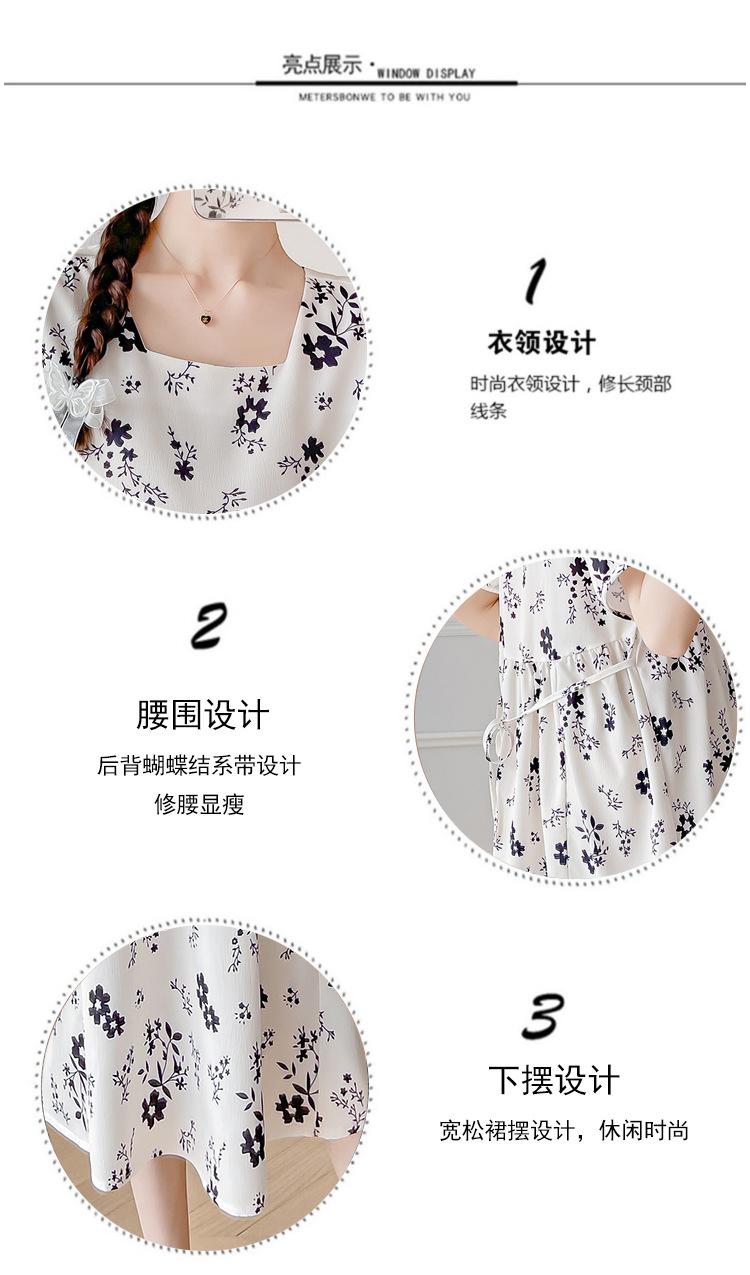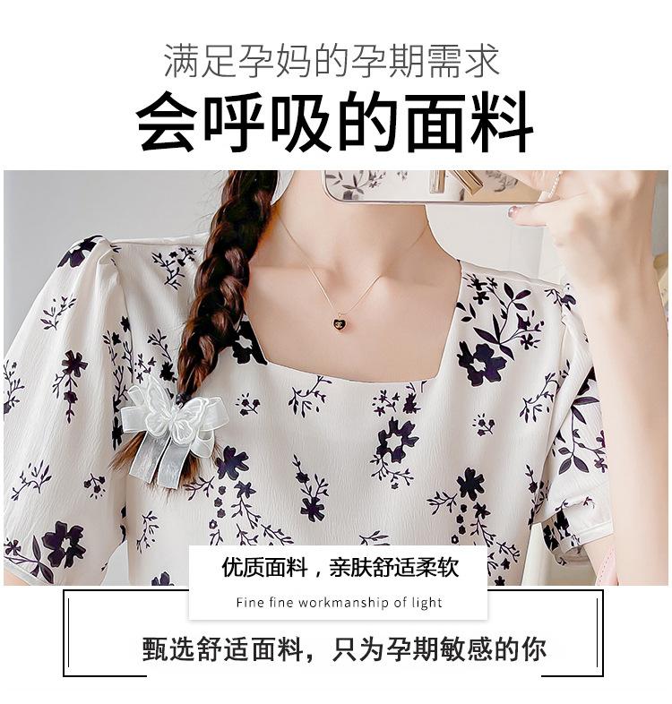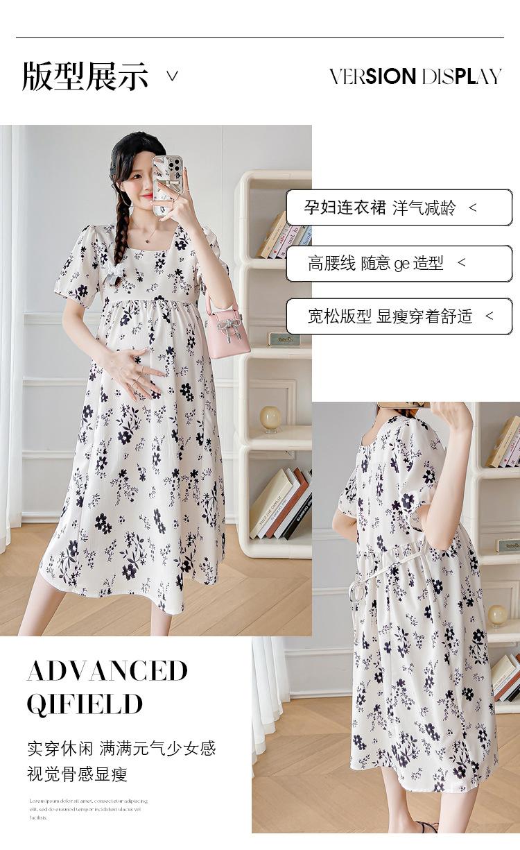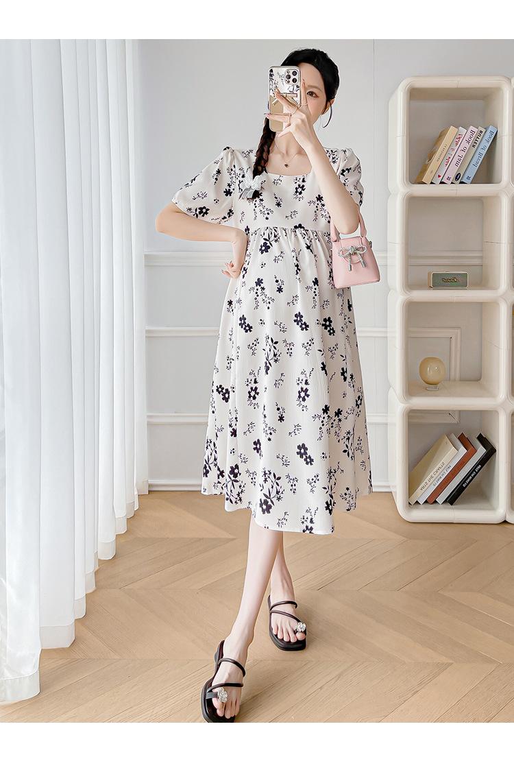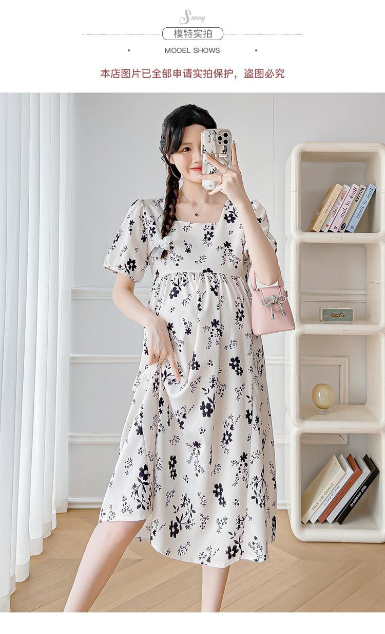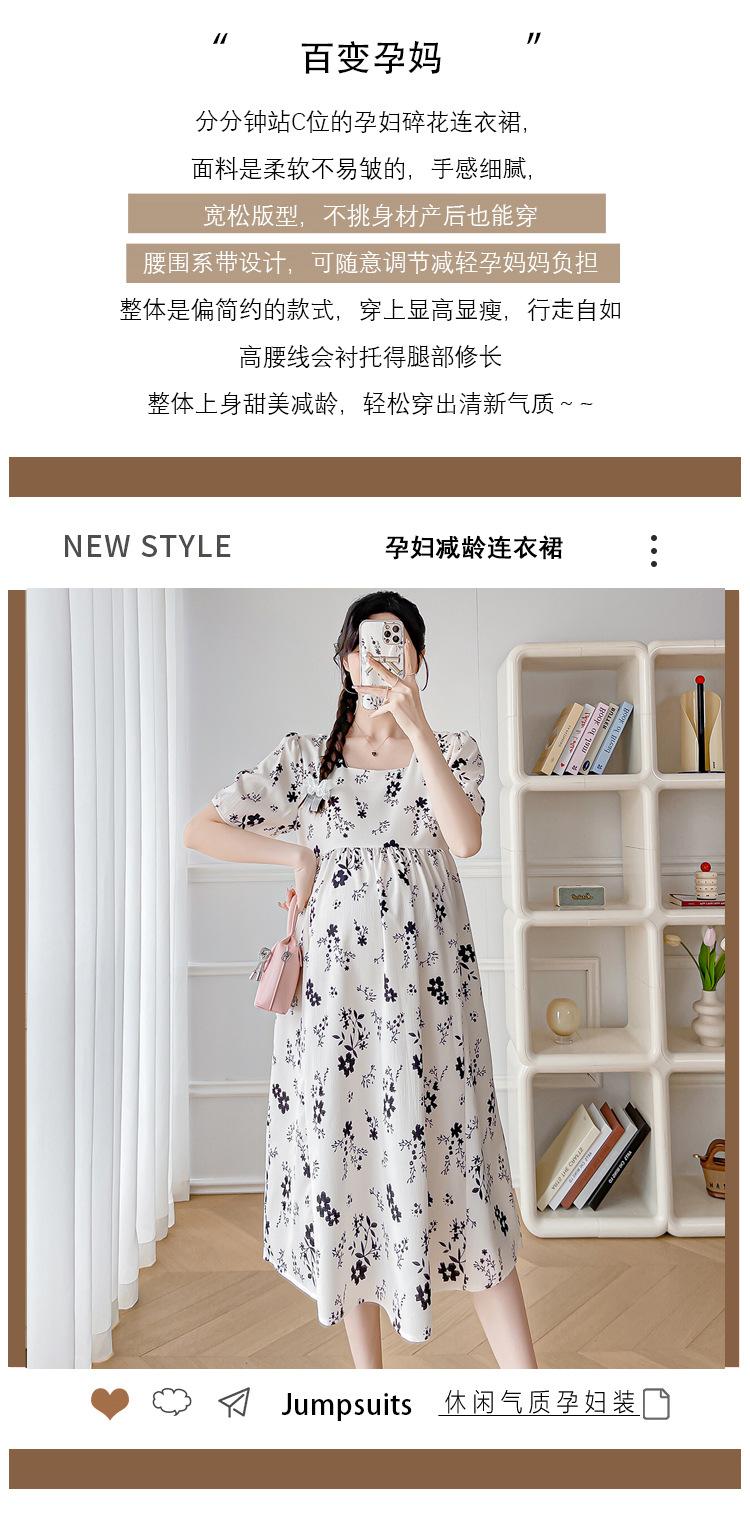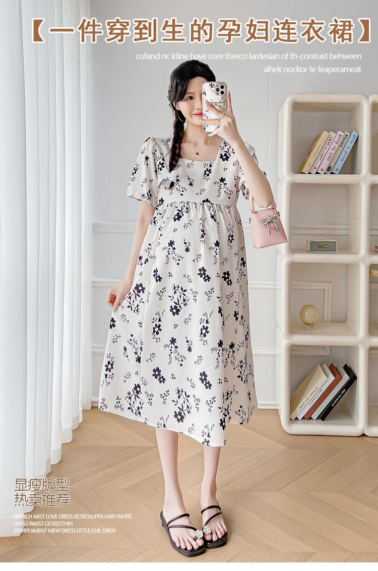 Vestido de Maternidad Verano Nuevo Dulce y a la Moda Pequeño Fresco Cuello Cuadrado Largo Medio Suelto Cubre Vientre Vestido de Maternidad